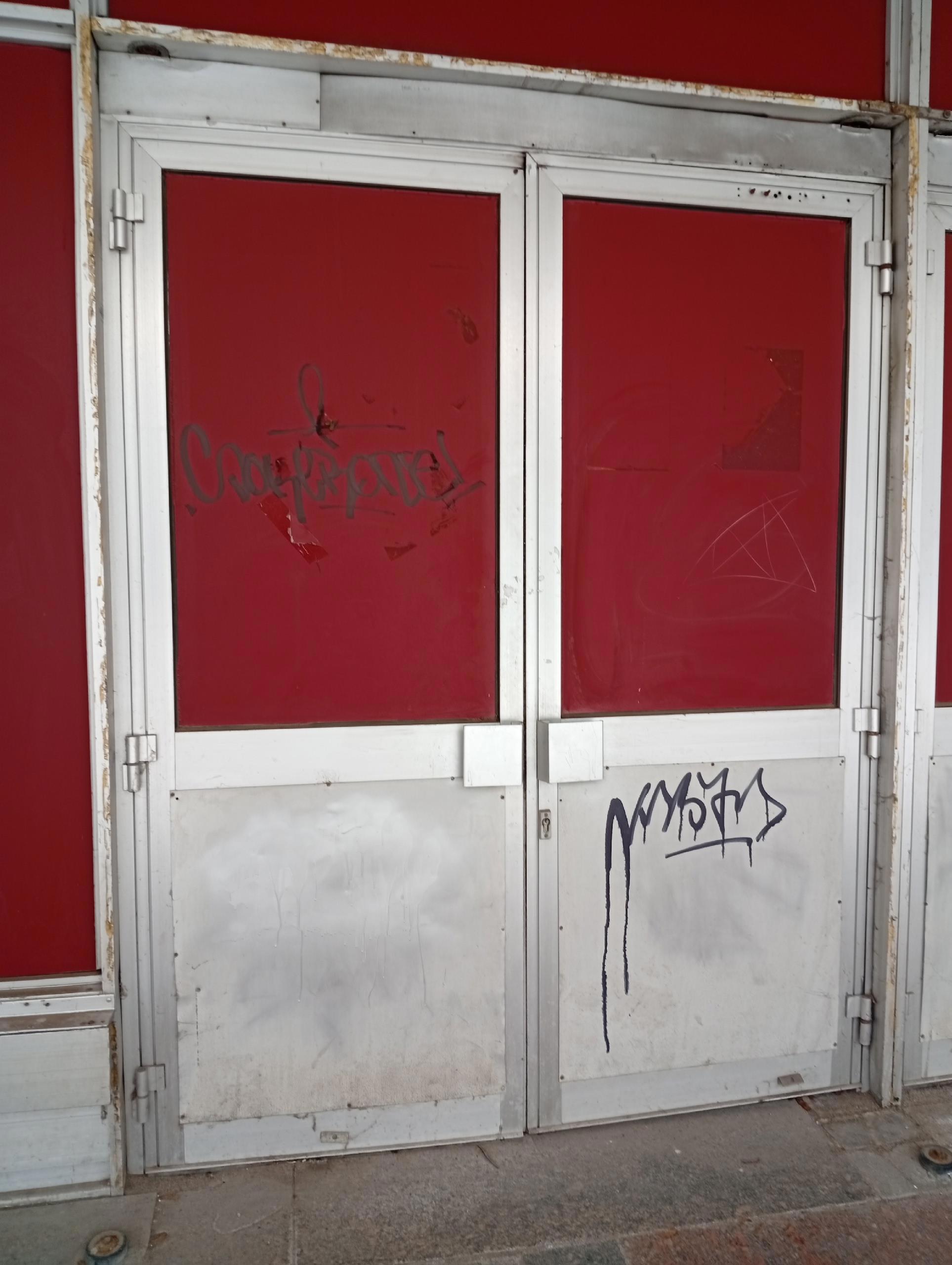 Вот это, кажется, аутентичные двери. Или по крайней мере максимально ранние. Но по-моему в моем детстве были именно такие. Двери на фото сохранились лишь с одной стороны универмага (стена, выходящая на "Софию")