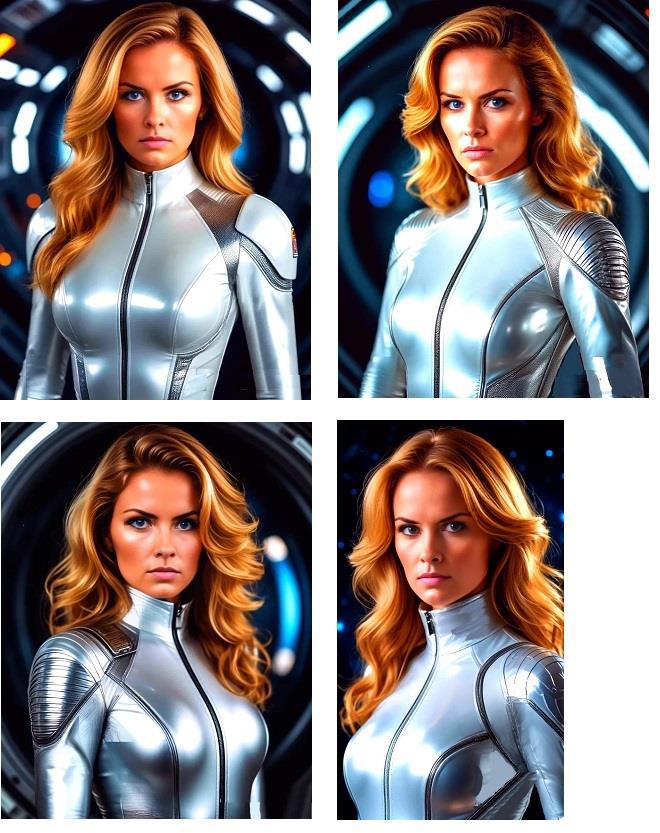 Ну если есть литературный образ, то его визуализация – это уже вполне себе рабочая задача. Опять-таки выбирая от противного, я дал ей золотые волосы и серые глаза. К этому прибавляется строгое выражение лица и взгляд, обращённый как бы внутрь себя. Осталось набрать генераций ИИ, выбрать подходящие и обработать их. Смотрите и оцените мои труды. Я буквально взял образ с потолка и слепил его из воздуха, буквально из ничего. Сам в шоке. Ну прямо всё в соответствии с песенкой волшебника, фраза из которой вынесена в заголовок.