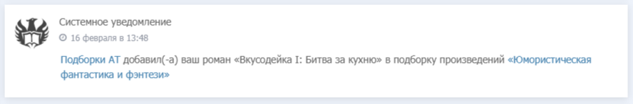 Теперь немножко новостей в виде системных уведомлений: