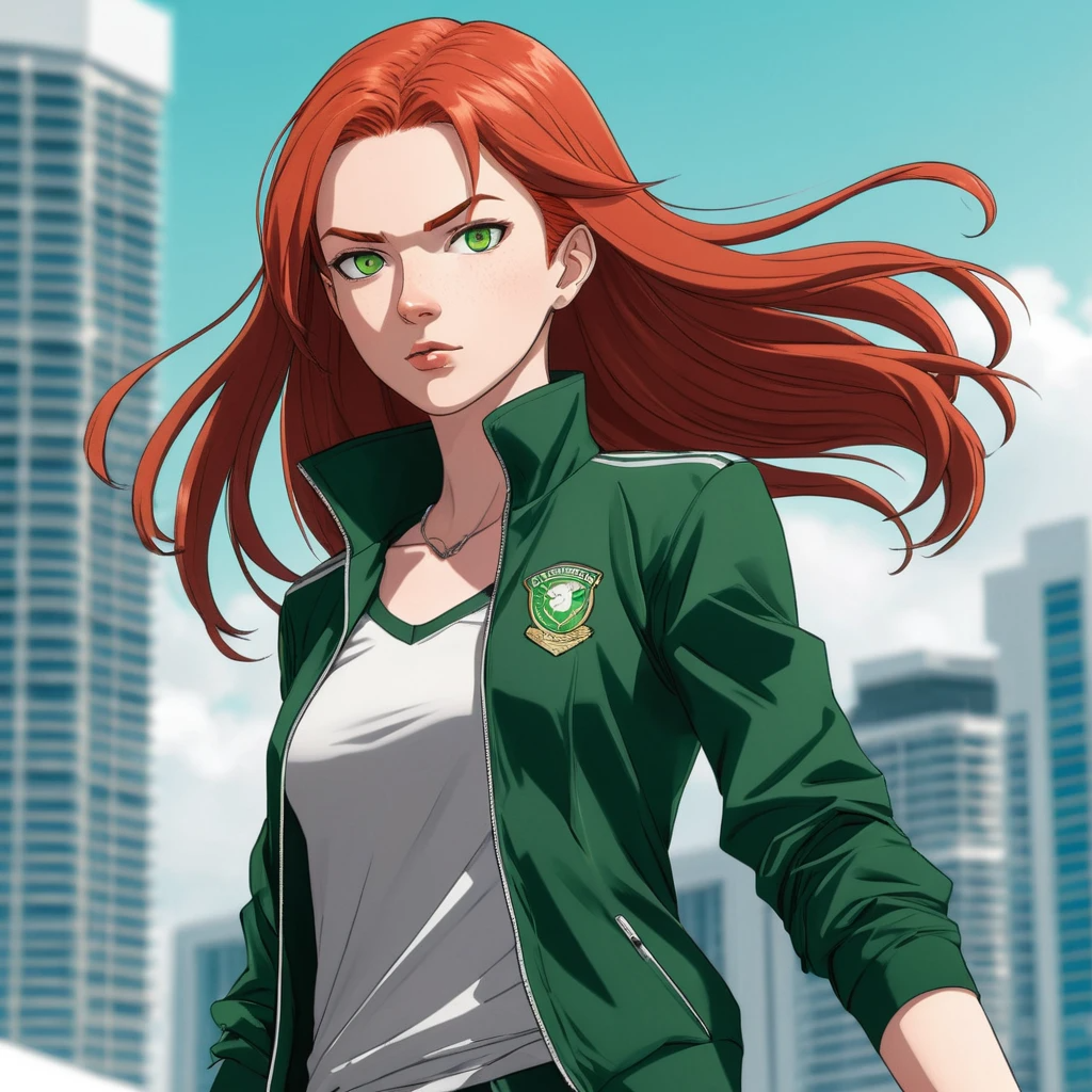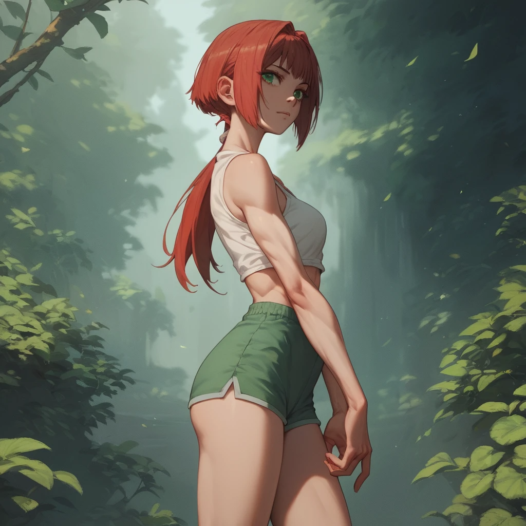 невысокая, спортивная, девушка - ирландка, двадцать лет, рыжие волосы и зеленые глаза, белая кожа