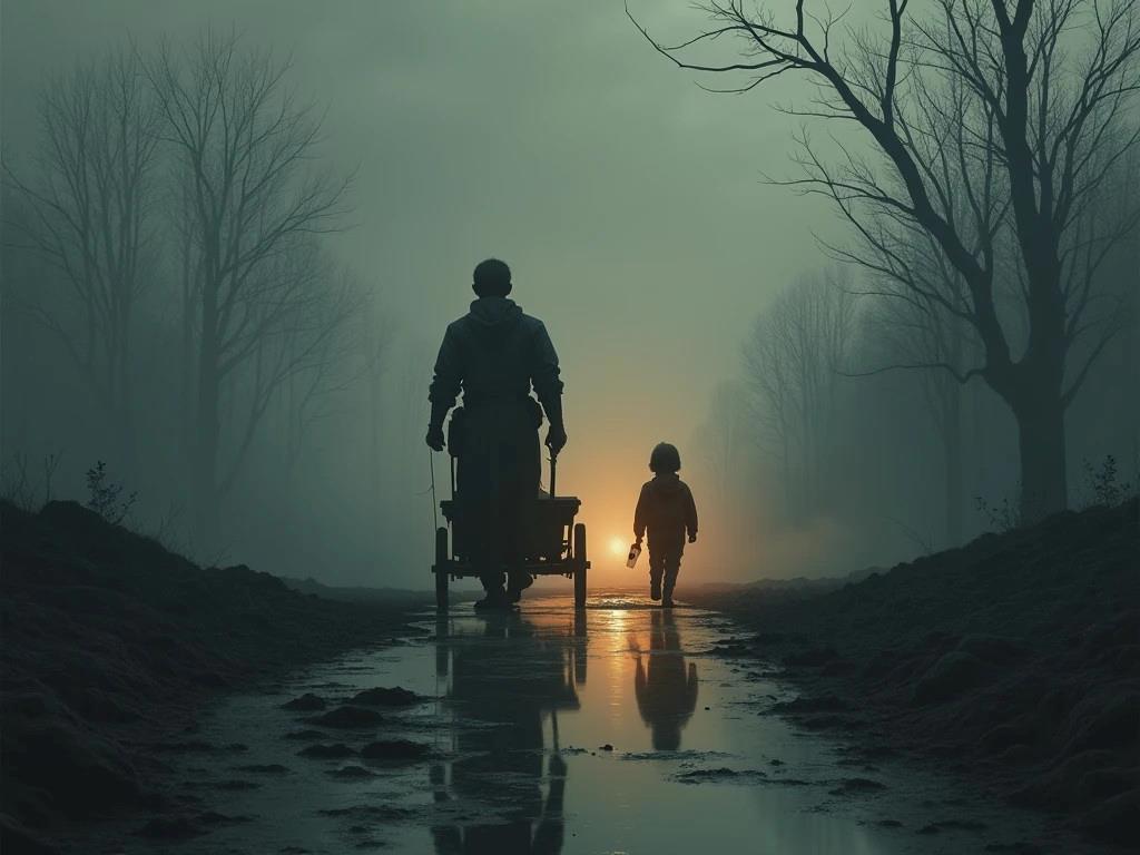 Отец — Защитник. Его мир сводится к пистолету с двумя пулями, тележке с обломками старого мира и выбору без выбора между жестокостью и гибелью. Его «огонь» — это зажигалка, оружие и яростная, почти звериная любовь к сыну. Он — прагматик выживания, ибо уверен: в этом мире доброта — не достоинство, а уязвимость.