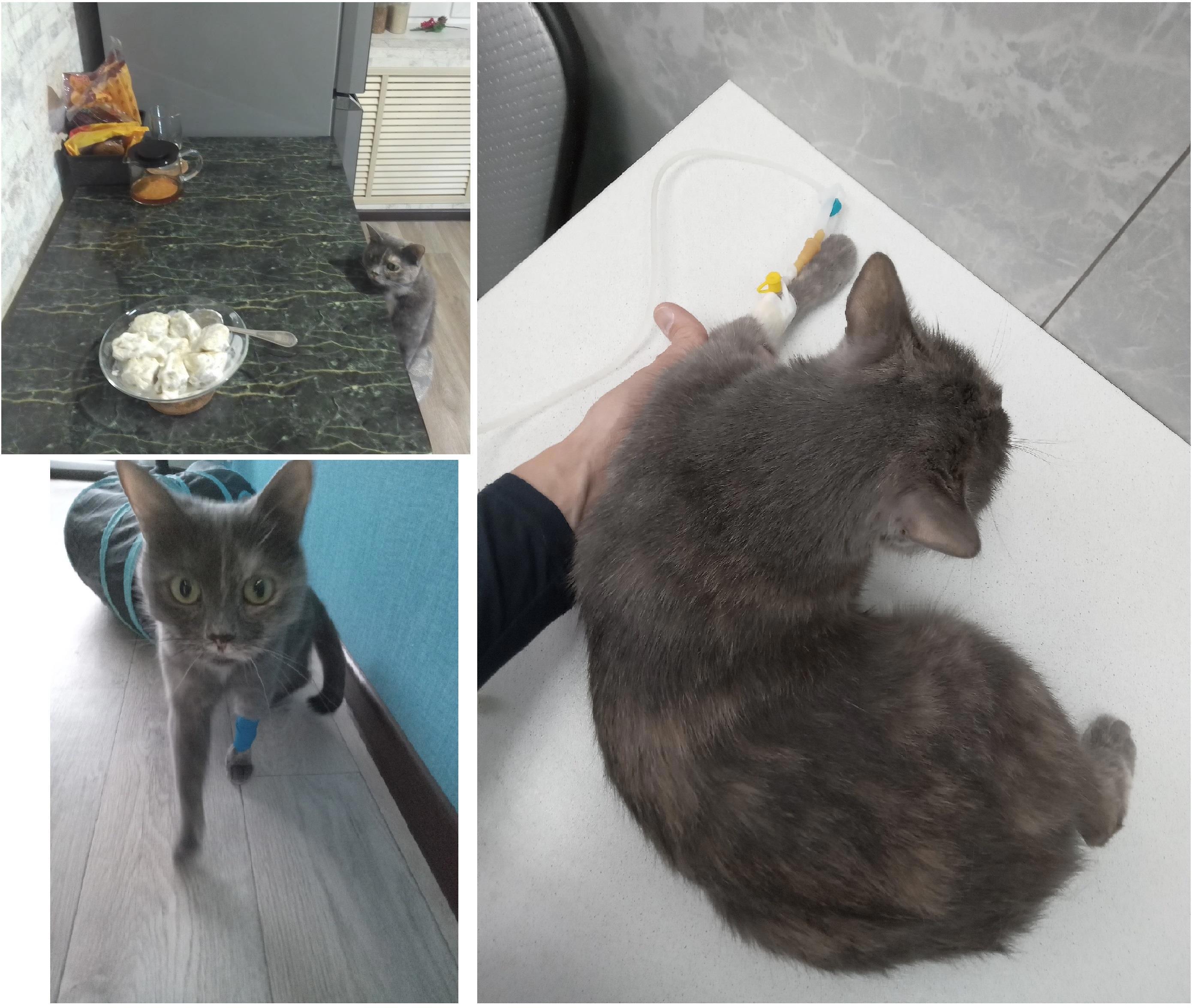А в последний день из её лапки наконец вынули катетер, перемотали.