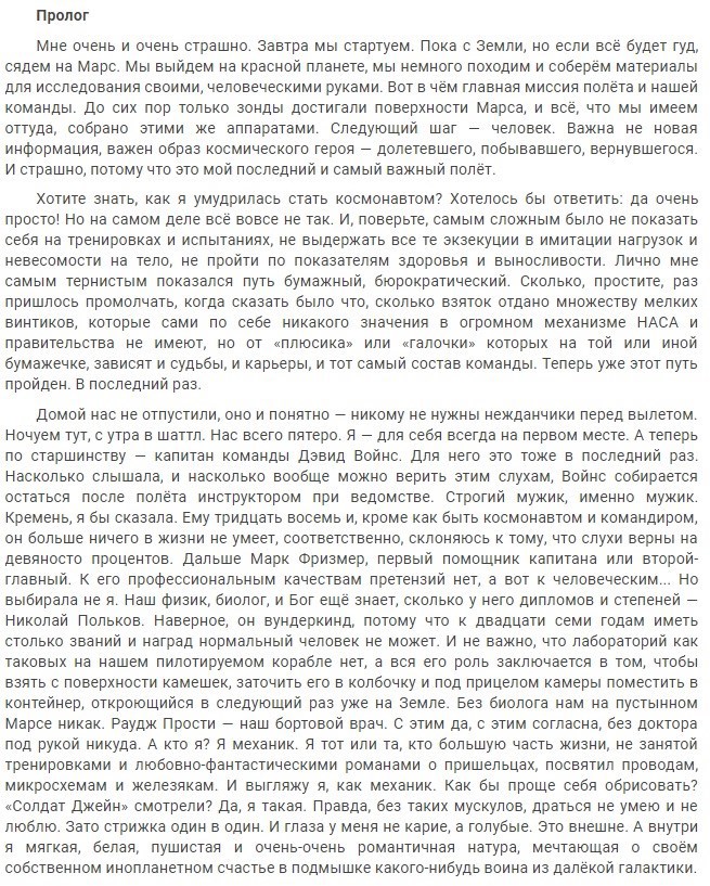 Особенно, если его роль заключается в упаковке марсианских камней в колбы. Неплохо было бы сюда геолога взять до кучи, но хозяин-барин, в смысле автор.