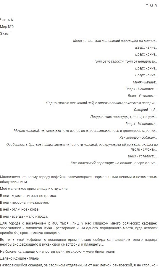 Начало весьма странное: Часть А... Мир №0... Что это дальше? Эпиграф?