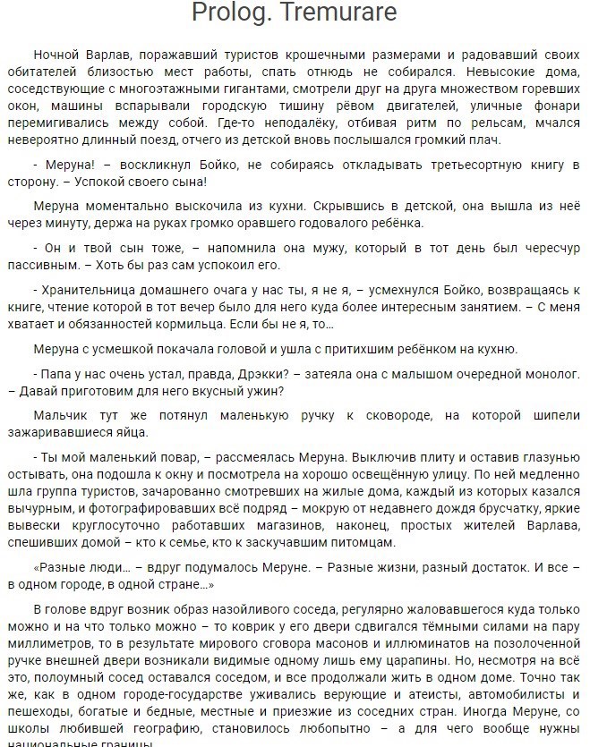 Вот это вот - Prolog.Tremurare - в самом начале коробит взгляд и мозги. Простите мою безграмотность, но мне это о чём-то должно сказать? "Пролог" латиницей и загадочное слово после?