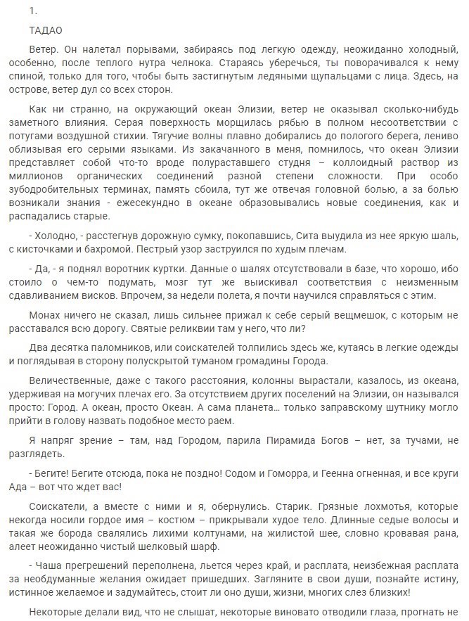 Возможно, даже почитал бы дальше, хотя автор пугал меня в дальнейшем фэнтези.