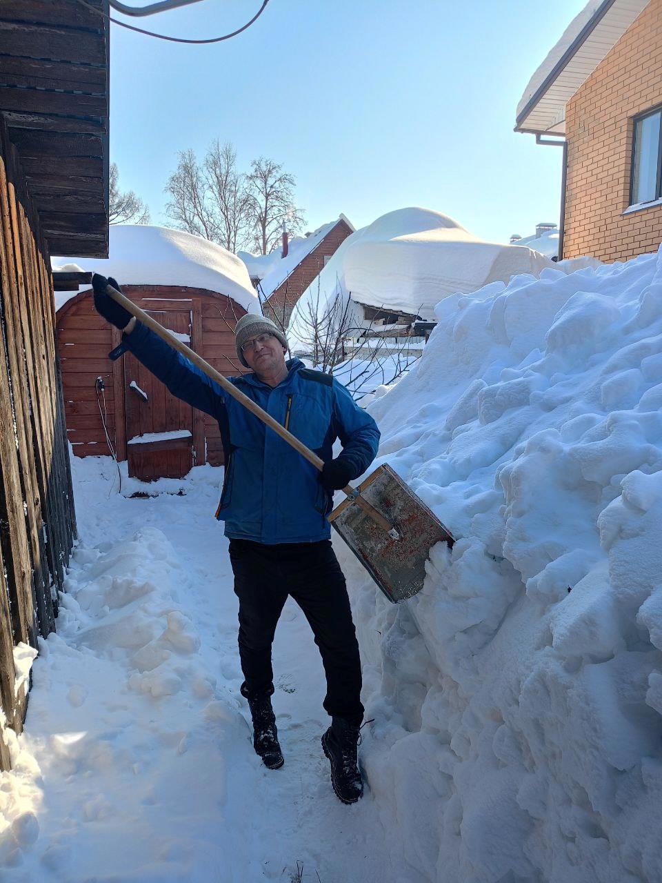 . Везде вокруг дома сейчас траншеи. Кое-где горы снега до крыши.