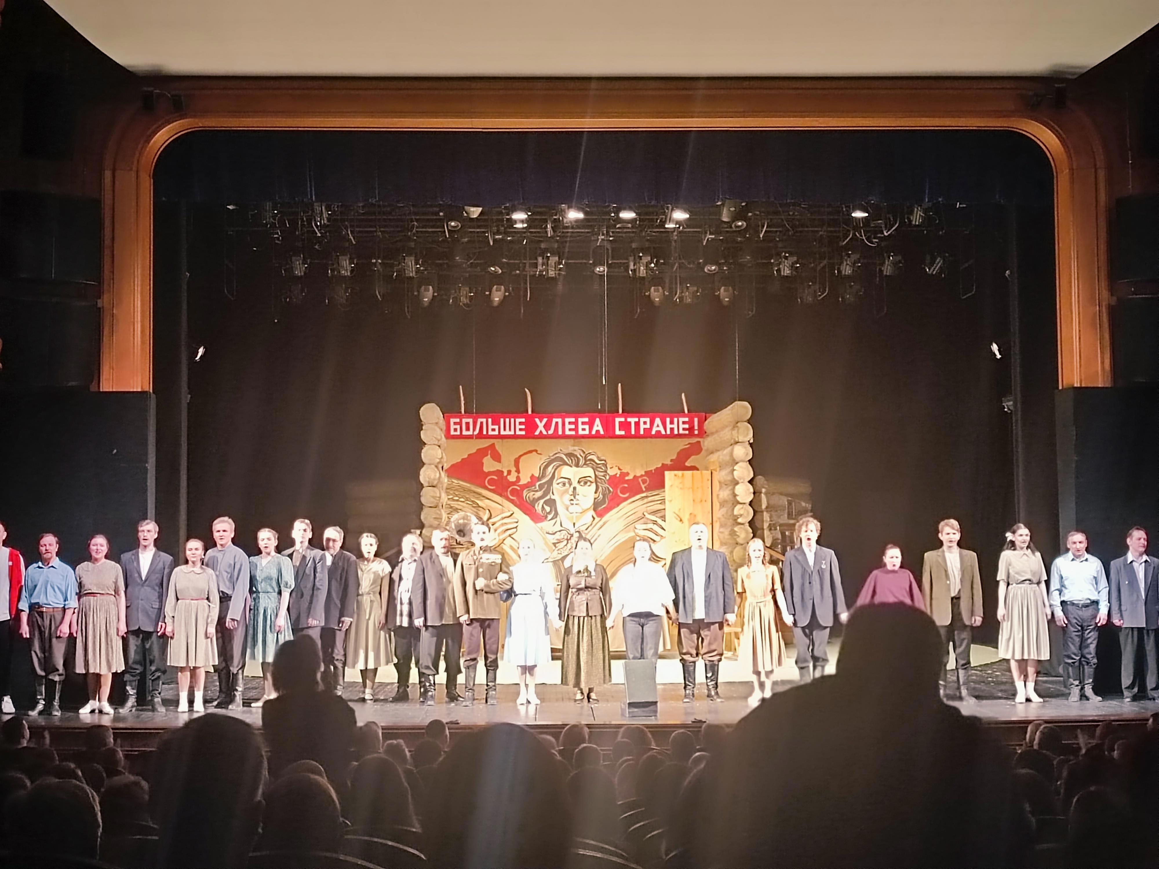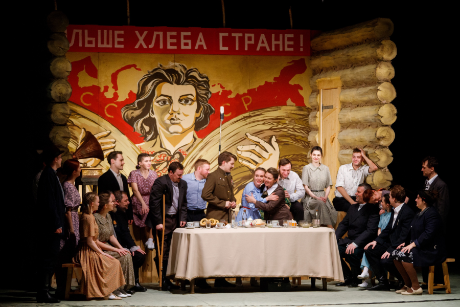 На такие спектакли лучше брать места на первых рядах. Чтобы увидеть сверкающие слёзы в глазах Ольги, ироничную мимику Максима, чулочки на танцующих девушках-колхозницах, а ещё почувствовать запах сигаретного дыма (аха, там по-настоящему курят на сцене). Герои полны обаяния, задушевной простоты и народной мудрости. Они умеют трудиться, искренне и горячо любить, весело отдыхать! Это люди, влюблённые в своё дело.