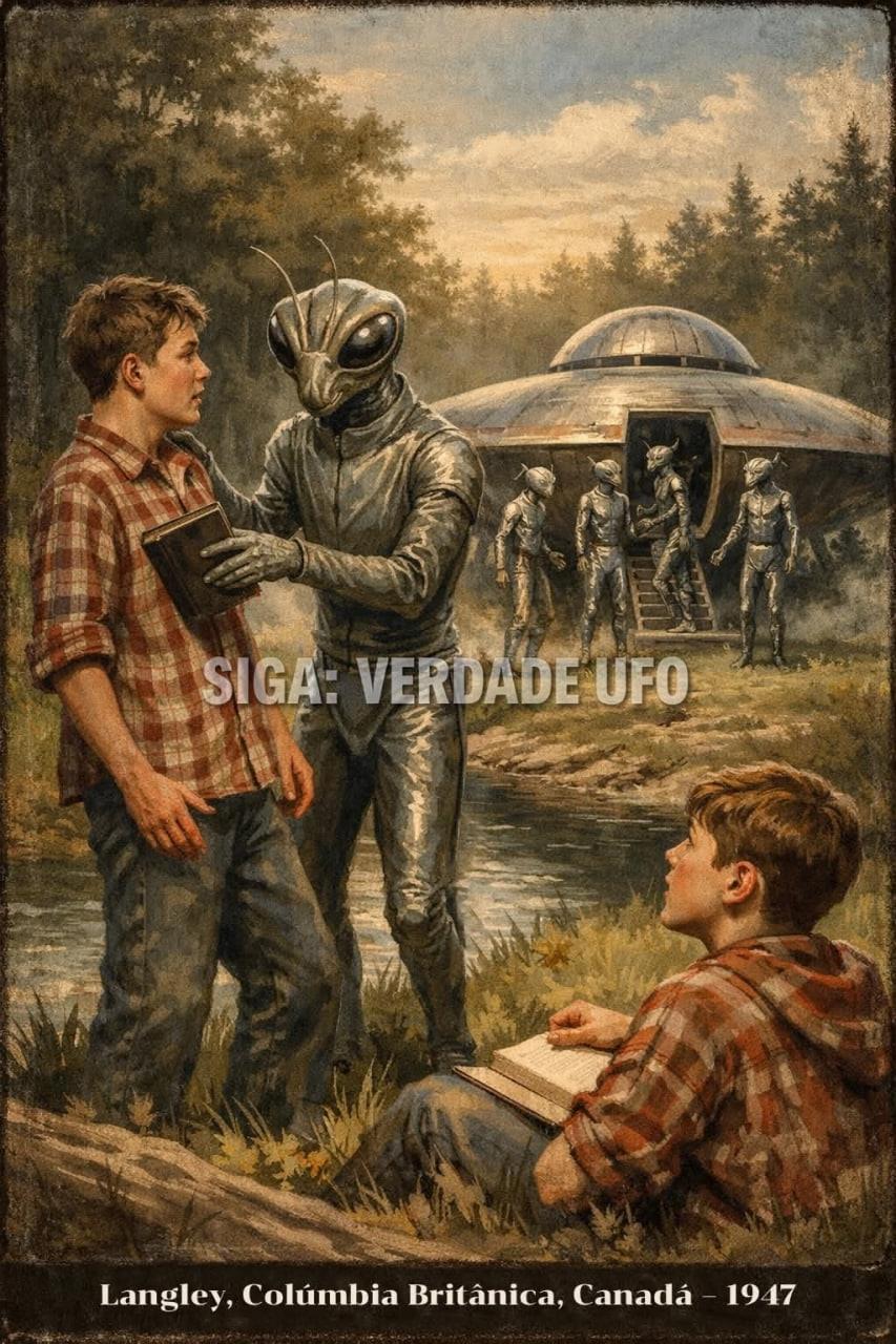 Летним днём 1947 года 16-летний и его младший брат отдыхали у ручья возле резиденции семьи, спокойно читая. В какой-то момент они оба услышали необычный жужжание, за которым последовало появление серебряного металлического предмета дисковидной формы с куполом сверху, который неожиданно приземлился в нескольких метрах перед ними.