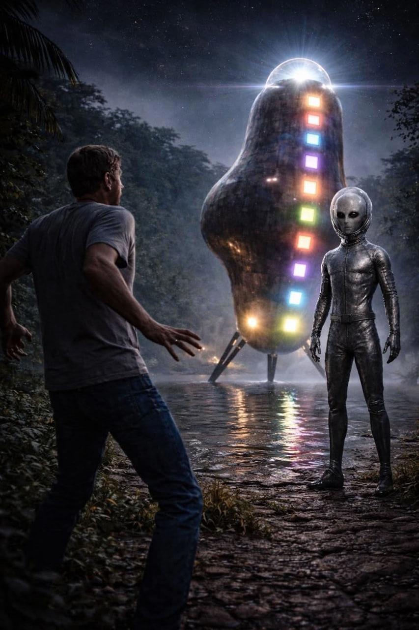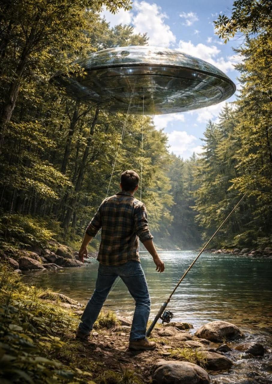 Во время рыбалки он заметил два очень тонких, почти невидимых провода, прикреплённых к его телу в форме вилки. Он сразу почувствовал лёгкий электрический удар и оказался полностью парализован. Затем он начал подниматься в воздух и двигаться в сторону металлического объекта в форме диска, замаскированного среди деревьев у реки.