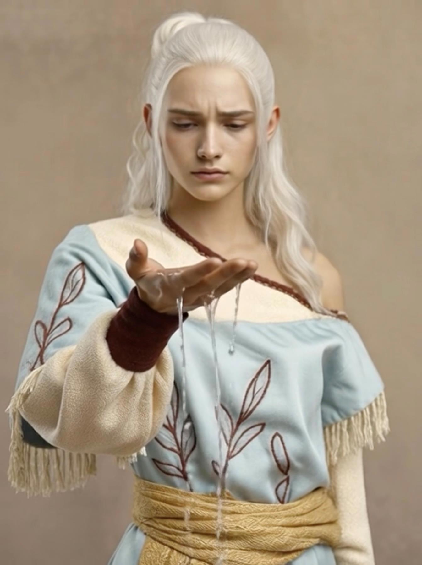 Автор: МарисластВилакожа – это так я назвала одежду, в которой вейлы появляются на земле. Вила (вейл) и кожа, понятно, логично, разумно) Вейлы не рождаются, они воплощаются на берегу своей реки, знают своё имя и суть, но памяти о прошлой жизни не имеют. Все они появляются в одежде из небесно-голубого шёлка, бежевого хлопка с бордовыми узорами и обрамлениями по горловине, подолу и рукавам. Но у каждого из них разные комбинации одежды, вот такие я создала для: