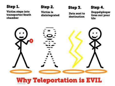 В 2010 году группа студентов-физиков из Лестерского университета задалась вопросом: а сколько времени на самом деле заняла бы телепортация человека, если бы она была возможна? Они взяли за основу технологию из «Звёздного пути» — дематериализацию объекта, передачу информации и обратную сборку. Посчитали объём данных, который содержится в человеческом теле: генетический код, нейронные связи, всё, что делает человека собой. Получилось около 2,6 × 10⁴² бит. Потом посчитали, сколько времени потребуется, чтобы передать этот объём данных с Земли на орбиту при современной пропускной способности каналов.