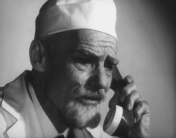 А старичок-профессор уже облачается в полный противоэпидемический костюм и приступает к выполнению своих врачебно-служебных обязанностей – осматривает того самого заболевшего врача. Пациент говорит, что он «ошибся в диагнозе», на что профессор отвечает «это трудно сказать». Ясное дело, успокаивает пациента, но как-то очень размеренно, спокойно, роботизированно и – неестественно.