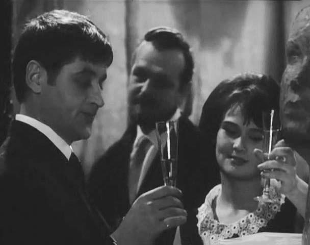 Показано, как отдыхают взрослые серьёзные люди – танцуют и пьют. Большая квартира, радиола. Приглушённый свет.
