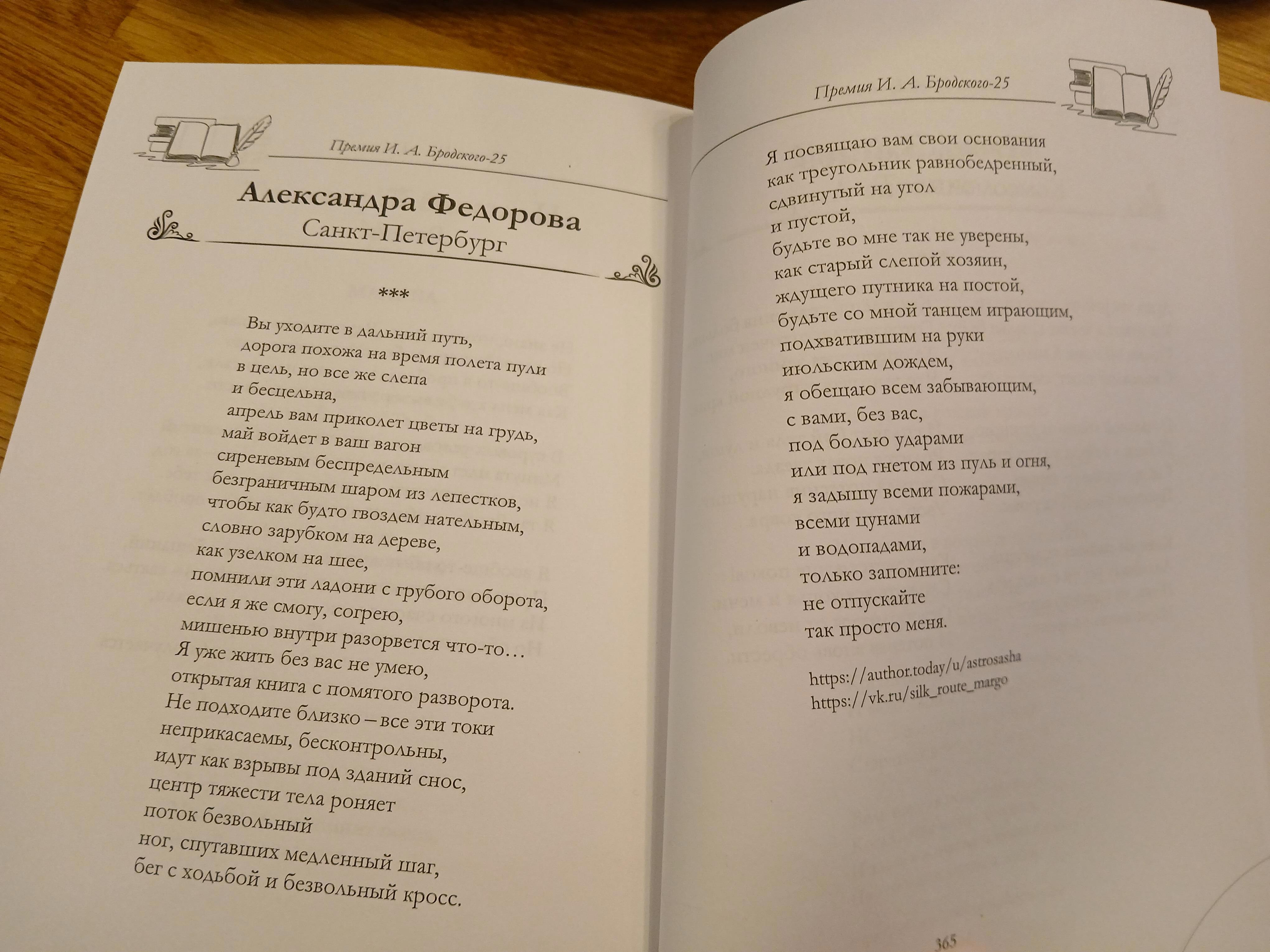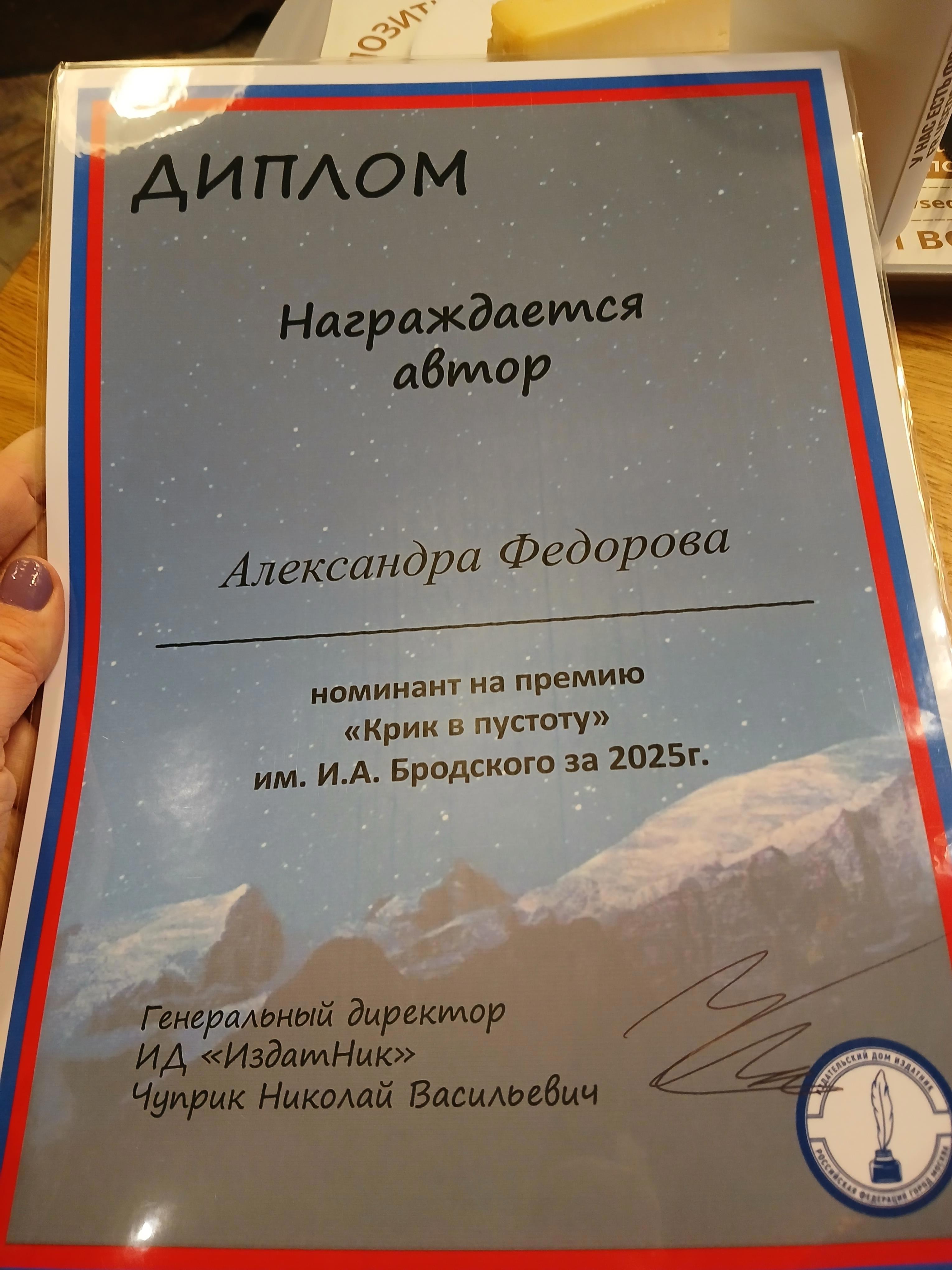 Автор: Aleksandra FedorovaОсенью подала заявку на участие в конкурсе, посвященном Иосифу Бродскому. И благополучно об этом забыла. А 30 декабря была обрадована, что включена в список номинантов премии. Стихотворение, которое я представила на этот конкурс, очень знаковое для меня. Оно связано и с Бродским, и с песней Елены Войнаровской под одноименным названием. Когда-то именно оно было отправлено на конкурс к переизданию альбома любимой группы. Поэтому публикация согревает вдвойне.