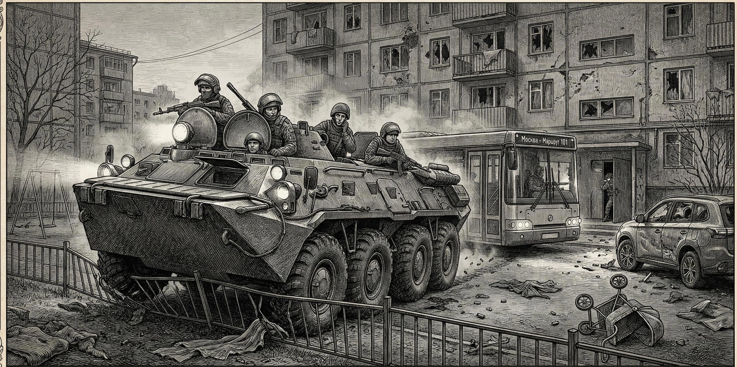 3-5. "Ванечка-внучек" и передача боеприпасов "местному вооружённому ополчению". Четвёртый и пятый рисунки - одинаковые, только последний - в цвете.