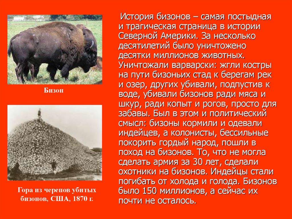 Мигранты начали строить города и понемногу осваивать леса, частично их вырубая и расстреливая всякое зверьё начиная с оленей и заканчивая бизонами, которых истребили почти полностью.