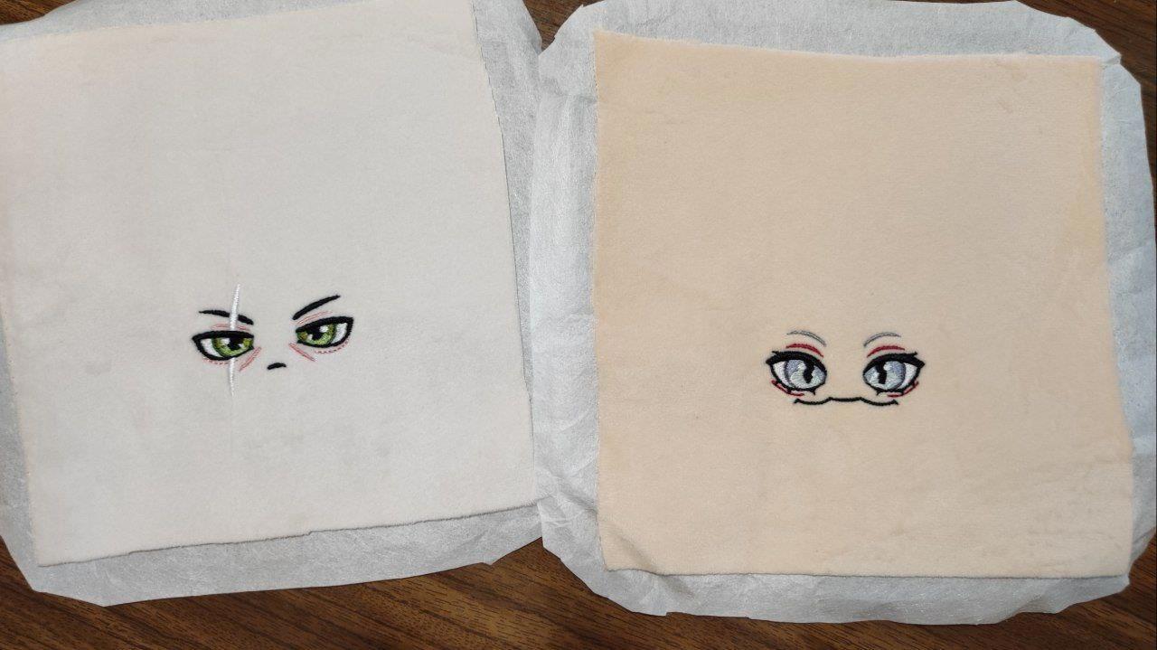 Воспользовалась служебным положением и заказала у знакомой с вышивальной машинкой глазки и ротики, чтобы потом из этого сшить игрушку по китайским выкройкам!