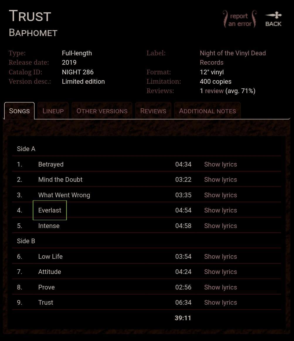 Оригинальный текст «Betrayed» даёт сайт «The Metal Archives», где можно найти и другие более андеграундные группы мира из разных времён, что отсутствуют на VK Музыка, Яндексе, Spotify и т.д., хотя для посещения понадобится VPN, но пользователи делятся альбомами и песнями и подпольного русского метала.