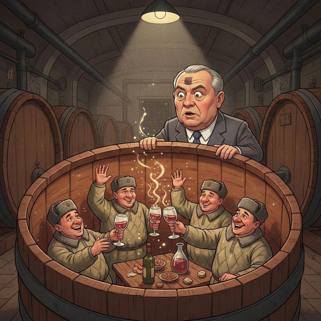 Винные партизаны: Оказалось, что местные жители, используя старинные подземные ходы и лазейки (которые знали только они), пробирались на закрытый завод и устраивали там подпольные дегустации прямо в этих огромных цистернах. Они буквально сидели на дне бочки, пили вино и обсуждали политику. Когда Горбачёв заглянул, кто-то из них неосторожно поперхнулся.