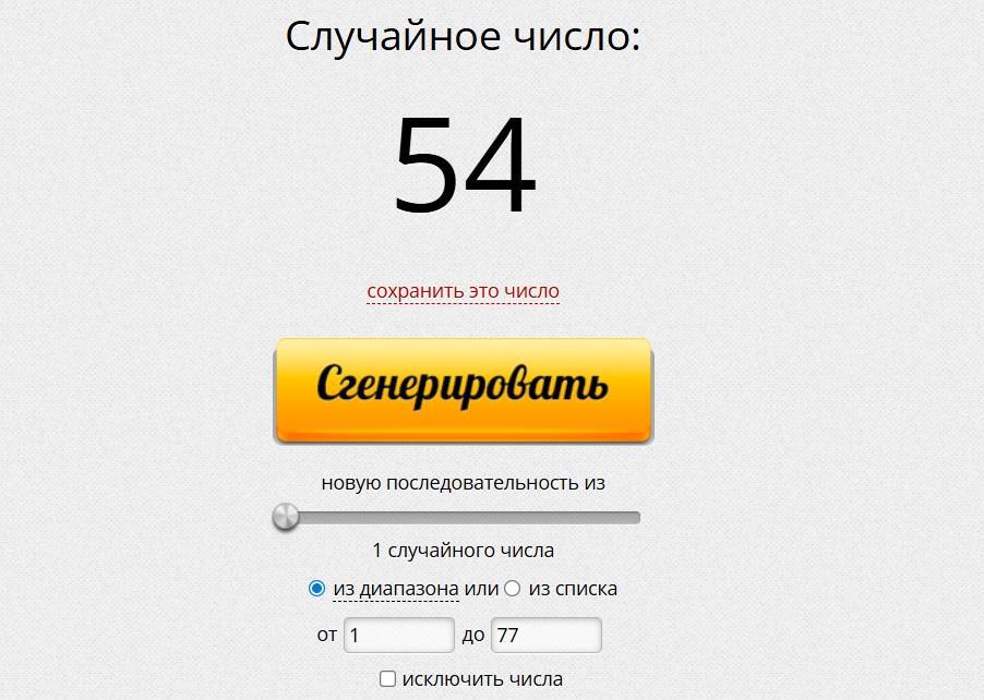 Онлайн-генератор случайных чисел показывает нам номер победителя: