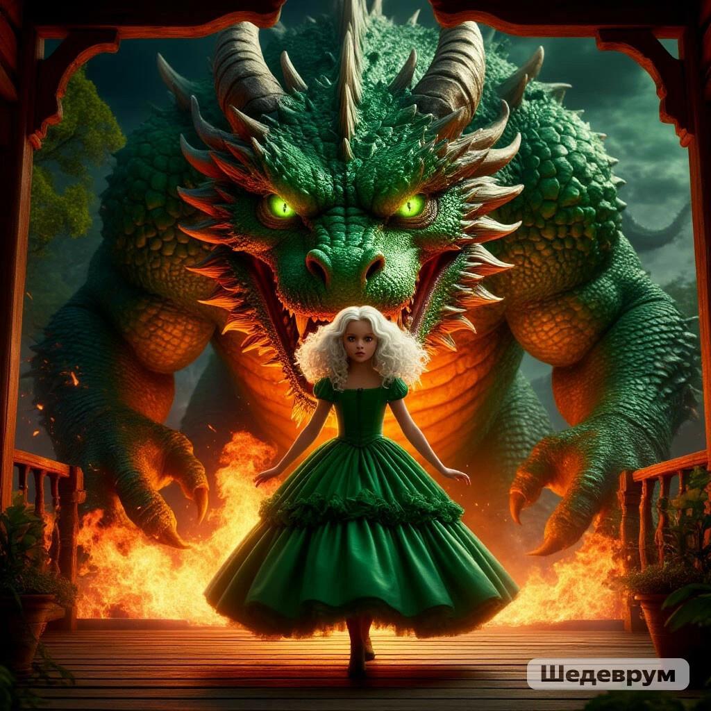 Девушка спешно выбежала на веранду вслед за драконом. Король Фай уже трансформировался в огромное чудовище. Его прежде зелёные глаза теперь пылали огненным цветом, словно два миниатюрных вулкана. Из огромной пасти время от времени извергалось пламя, оставляя лёгкий дымок около его грозной морды в те мгновения, когда пасть ненадолго смыкалась.