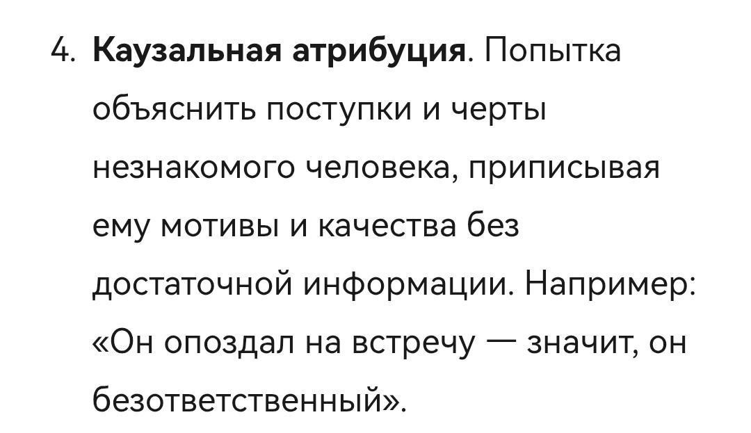 Фундаментальная ошибка атрибуции. Свои промахи мы объясняем обстоятельствами "я опоздал, потому что пробки", а чужие - характером "она опоздала, потому что безответственная".