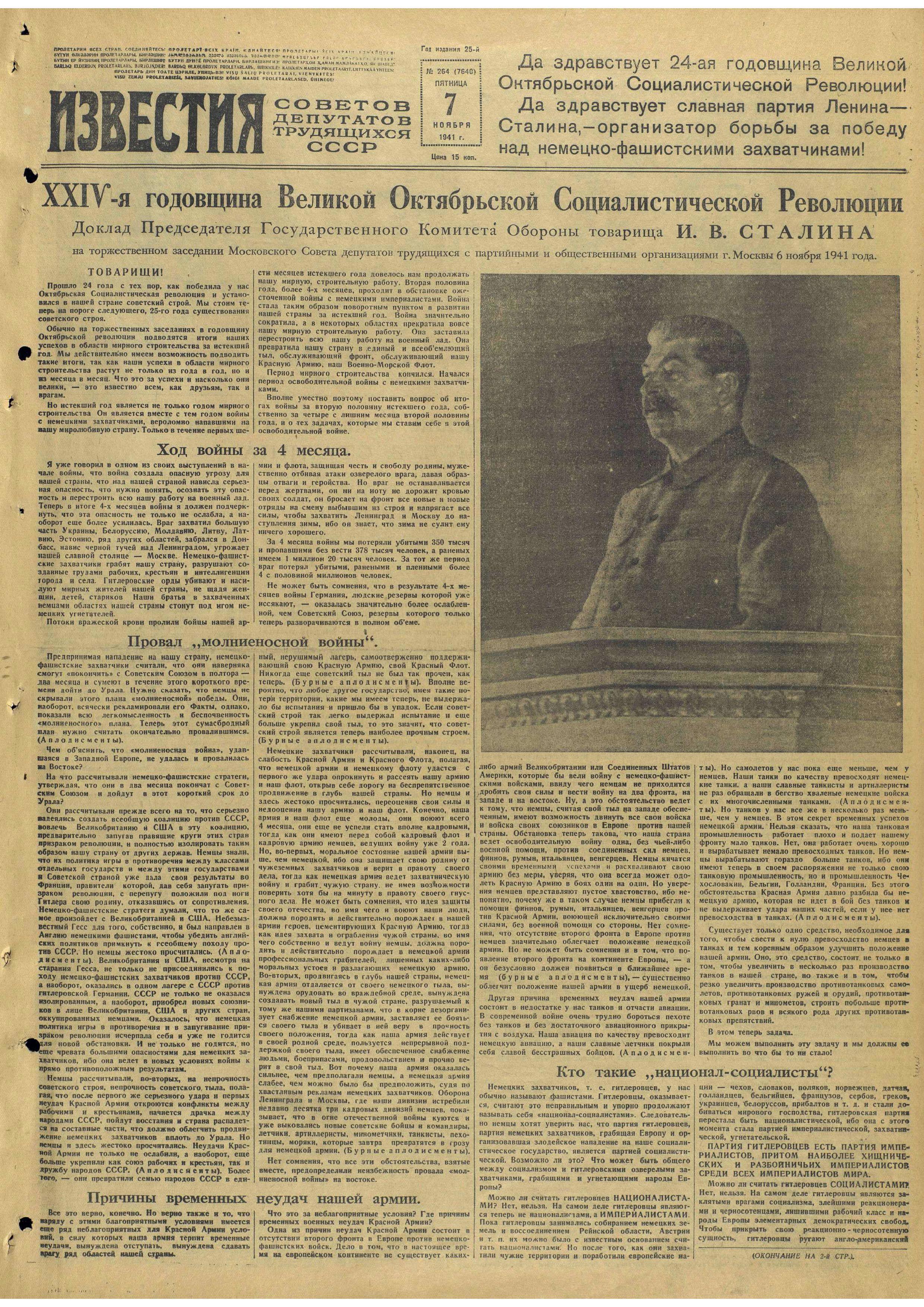 Несколько раз попадались на глаза заметки, в которых рассматривался доклад И.В. Сталина на торжественном заседании Московского Совета депутатов трудящихся с партийными и общественными организациями г. Москвы 6 ноября 1941 г. Точнее не сам доклад, а та его часть, в которых говорится о людских потерях Советского Союза.