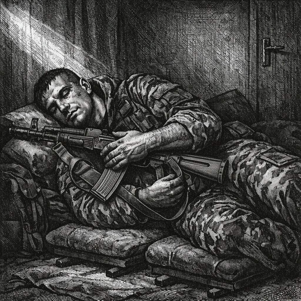 6. Сладкий сон бойца ОМОН в бывшем пресс-центре "ИТАР-ТАСС".