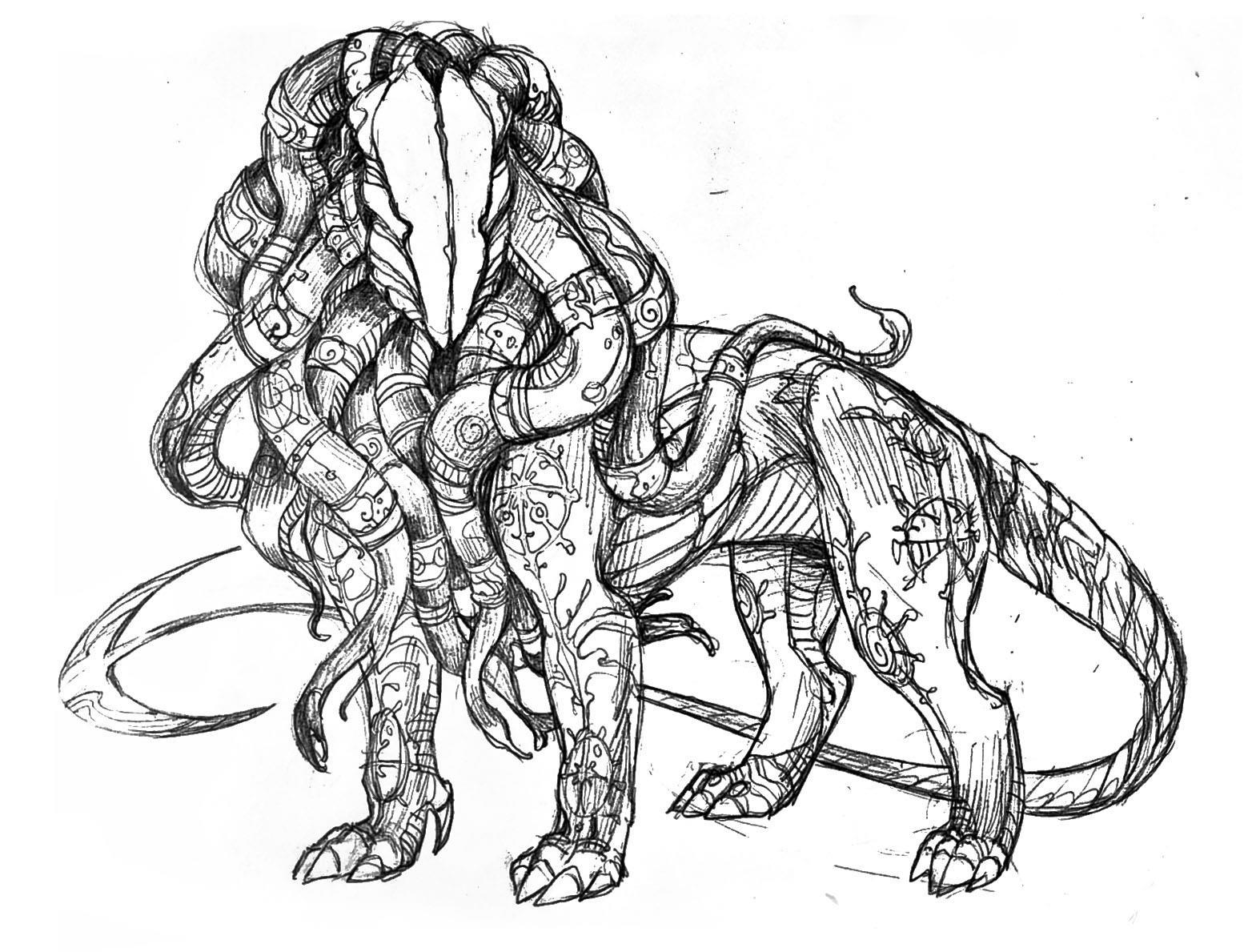 Он тоже похож на льва, но гораздо крупнее Дугала, и у него есть пара рук. Не уверена, что он такой и есть, как я нарисовала, скорее, в нем больше от коня, чем от большого кота. Про Абраксаса еще буду думать, а Дугал похож:))