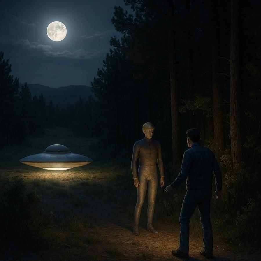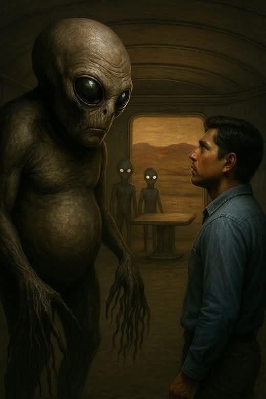 Внезапно Динарди оказался втянут внутрь летающего диска, где он столкнулся с несколькими гуманоидными существами ростом около 1,4 метра. Эти существа были одеты в костюмы, напоминающие скафандры, украшенные различными элементами, имели необычно вытянутые лица и заострённые уши. Они общались с ним чётким, механическим голосом, используя английский язык.
