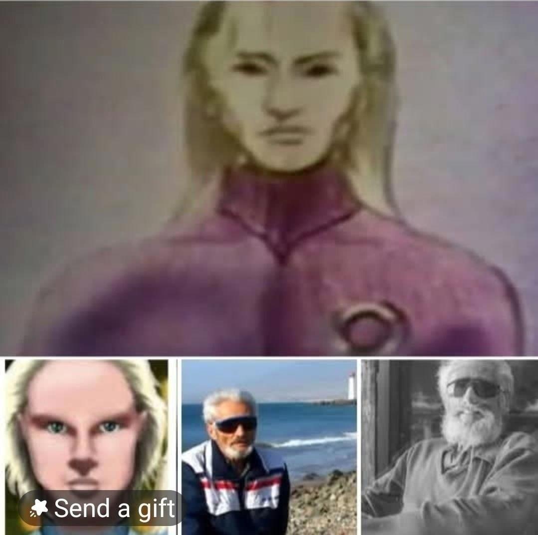 Сандро и Анджела ясно увидели фигуру, тогда как остальные присутствующие лишь заметили суматоху и крик, не сумев разглядеть существо. Лицо было бледным, тонким и вытянутым, с большими светлыми глазами, узким ртом и белыми «куполоподобными» волосами. До плеч оно было одето в обтягивающий серебристый костюм и внимательно наблюдало за происходящим, словно из любопытства.