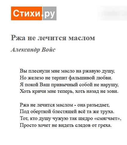 Автор: Александр ВойсВы плеснули мне масло на ржавую душу