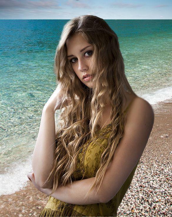 На вид девушке было не больше семнадцати лет. Её небольшого роста точёная фигурка в двух местах была перечёркнута голубыми лоскутками купальника, а светлые волнистые волосы сколоты на затылке красной заколкой. Девушка улыбалась и что-то говорила стоящему рядом с ней кряжистому мужику лет сорока. У мужика были короткие и мощные конечности, придававшие ему сходство с набравшим мужскую силу кабаном.