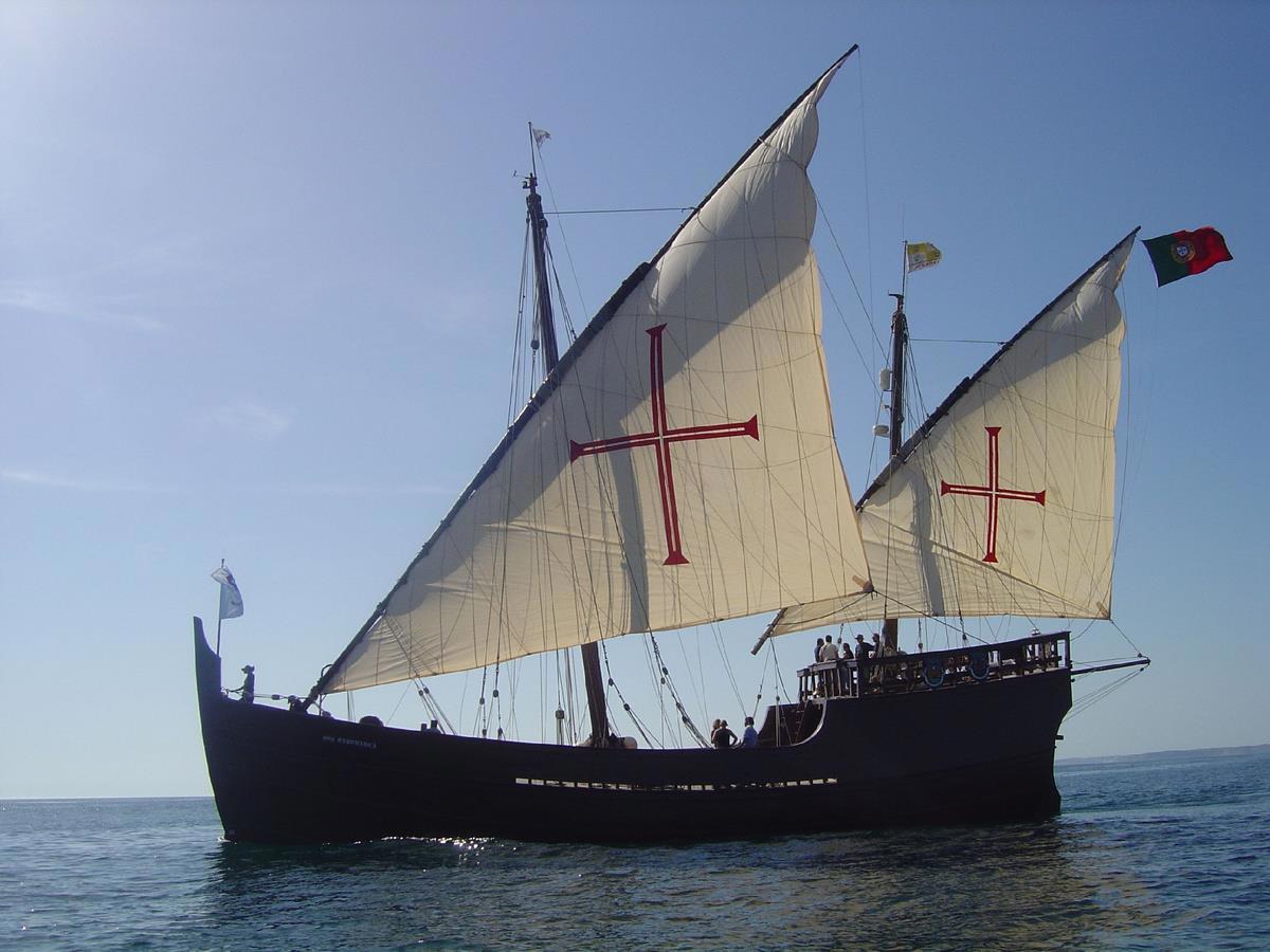 Две каравеллы Колумба, «Пинта» и «Нинья», несли прямоугольные паруса. В 1962 году копия «Ниньи» с экипажем в девять человек совершила юбилейный рейс в Америку. Правда, продовольствие в этом путешествии поставлялось на «Нинью» по воздуху.