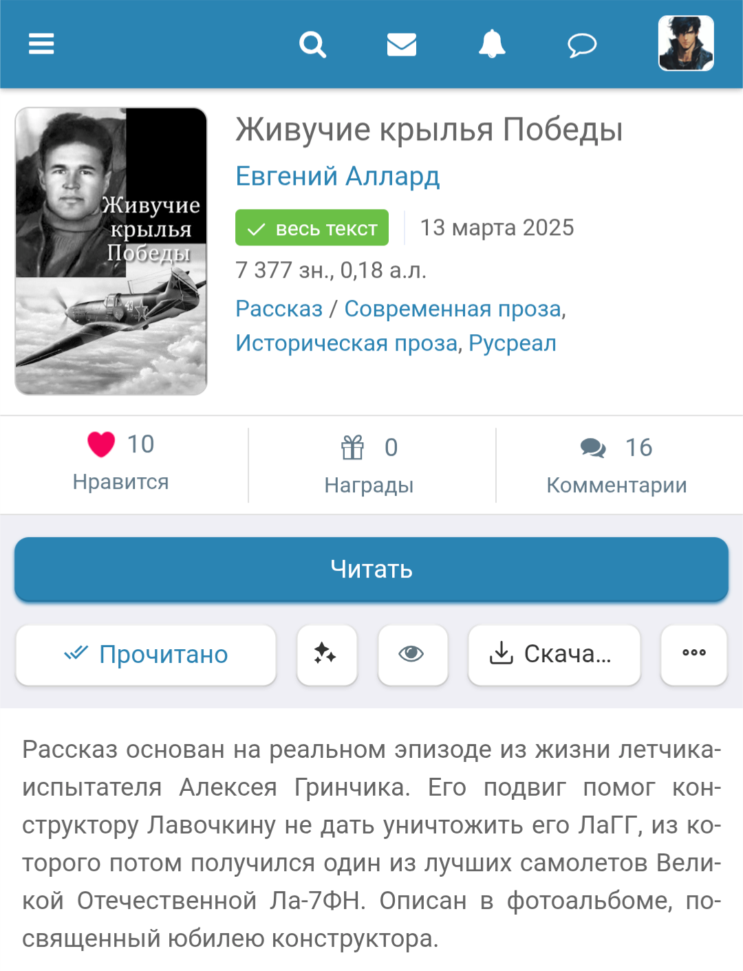 Автор: Ник ВернерСегодня присоединяюсь с рассказом Евгения Алларда о лётчике.