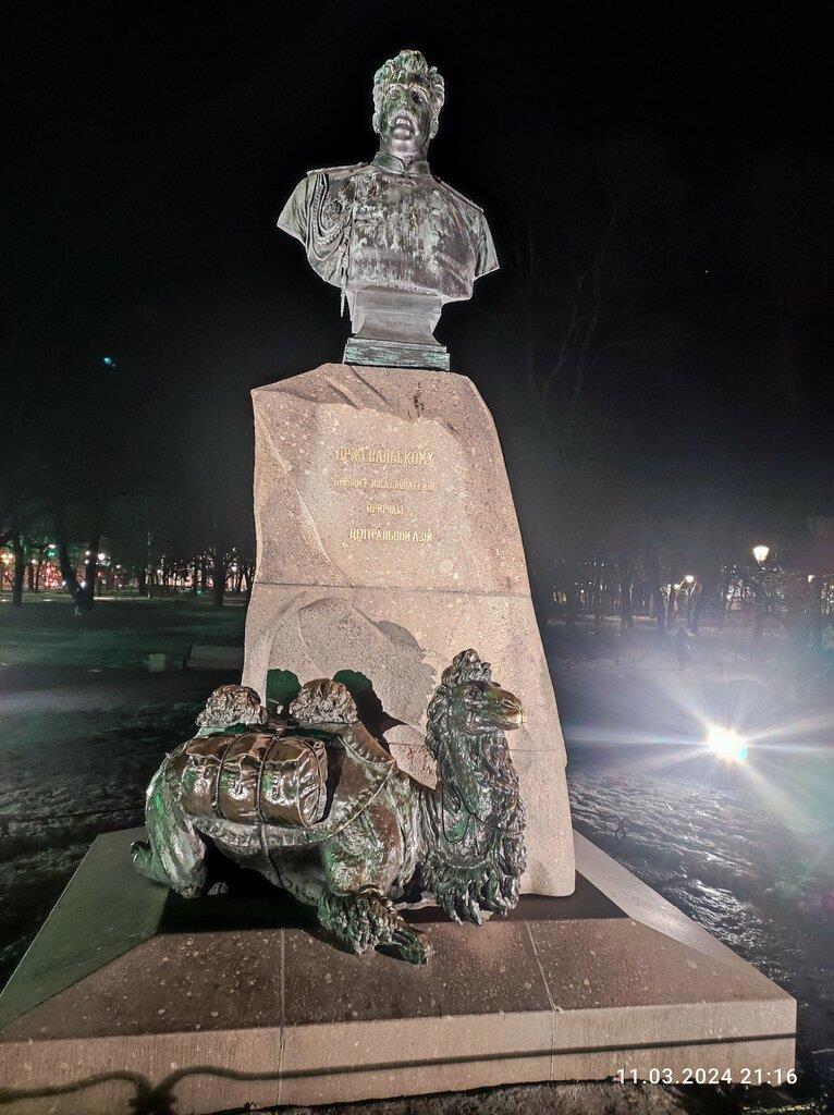 И, наконец, еще один памятник дореволюционному деятелю, Николаю Михайловичу Пржевальскому в Александровском саду у Адмиралтейства - "Сталин и верблюд"