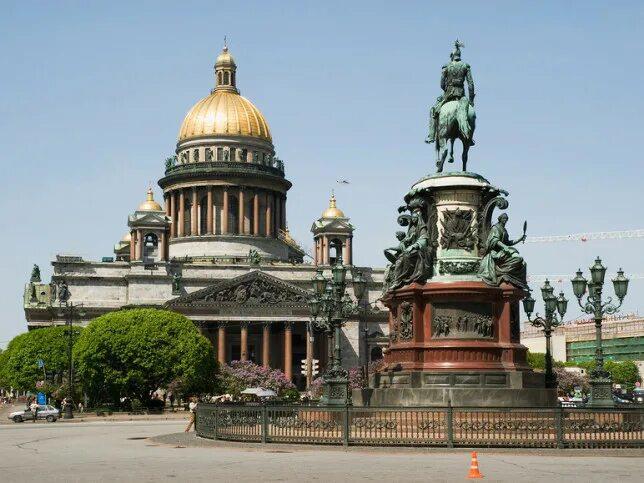 С другой стороны Исакиевского собора стоит памятник другому монарху - Николаю I. Взаиморасположение с памятником Петру дало поэтическое название "Дурак умного догоняет, да Исакий мешает"
