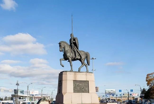 Еще один объект, связанный с именем Александра Невского - станция метро. Там имеется скульптурный барельеф "Пять мужиков на четырех конях".