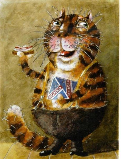 Один Холодец приставал в холодильнике к Сметане. Будь моей женой, да будь моей женой. Сметане надоело это хуже горькой редьки. И когда хозяйка открыла холодильник, Сметана выскочила из холодильника и убежала. А Холодец тоже выскочил. Но хозяйка его подхватила. Поставила на стол. И Холодец съели на ужин. А Сметана закатилась за батарею. И вскоре прокисла. Там её нашёл кот Димедролов. Кот замесил на сметане тесто и напёк оладьев с яблоками. Пышных, зажаристых и хрустящих по краям. Вот так кот.