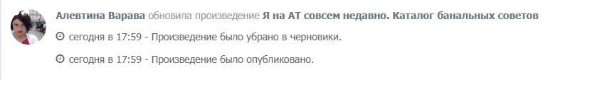 Важно! Убирать в черновики нужно именно главу, а не всю книгу! Если вы уберёте всю книгу в черновики и внесёте правки, читатель получит только уведомление о том, что произведение убрано в черновики и возвращено. У него не будет лавины уведомлений о всех ваших изменениях поглавно!