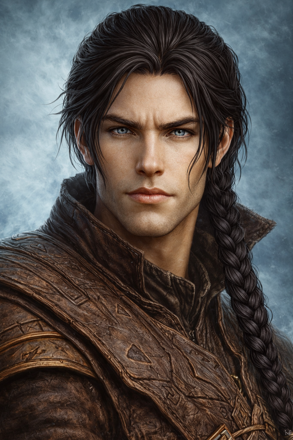 А тем временем моя дурная головушка перед сном решила попытаться сделать более полноценные портреты главных героев Сорой на основе имеющихся "вполголовы". И если Кларед получился почти идеальным (хотя чуть более смазливым, чем надо) буквально со второго тыка (она ему даже постаралась "звёздочками" расцветить глаза, а к "начёсу" придираться неохота, учитывая три неудачных варика, где то свиное рыло, то ещё чего),