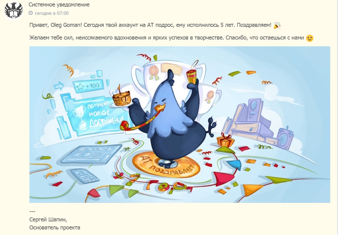 Такая мелочь - тебя проект поздравил с юбилеем, а приятно.