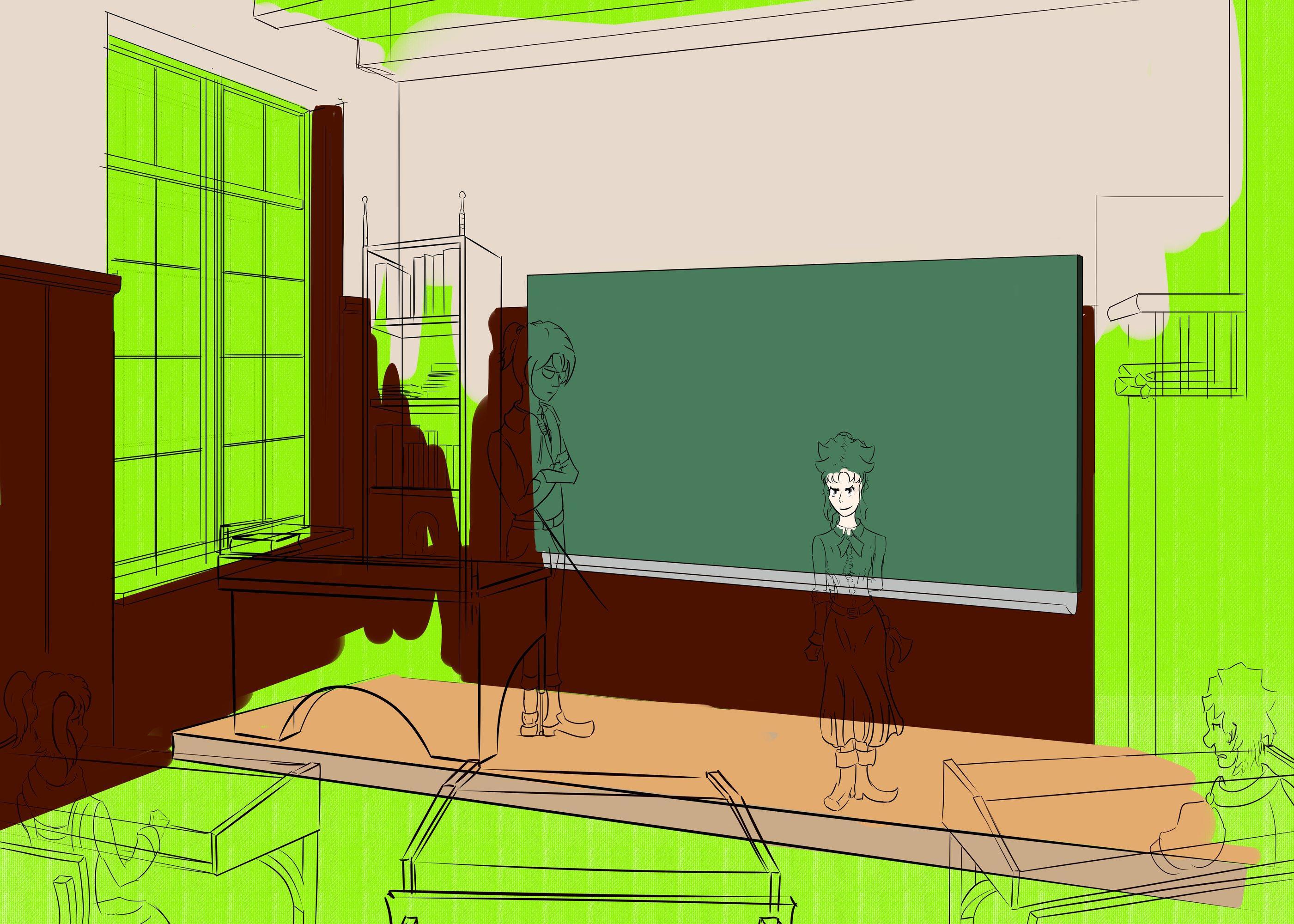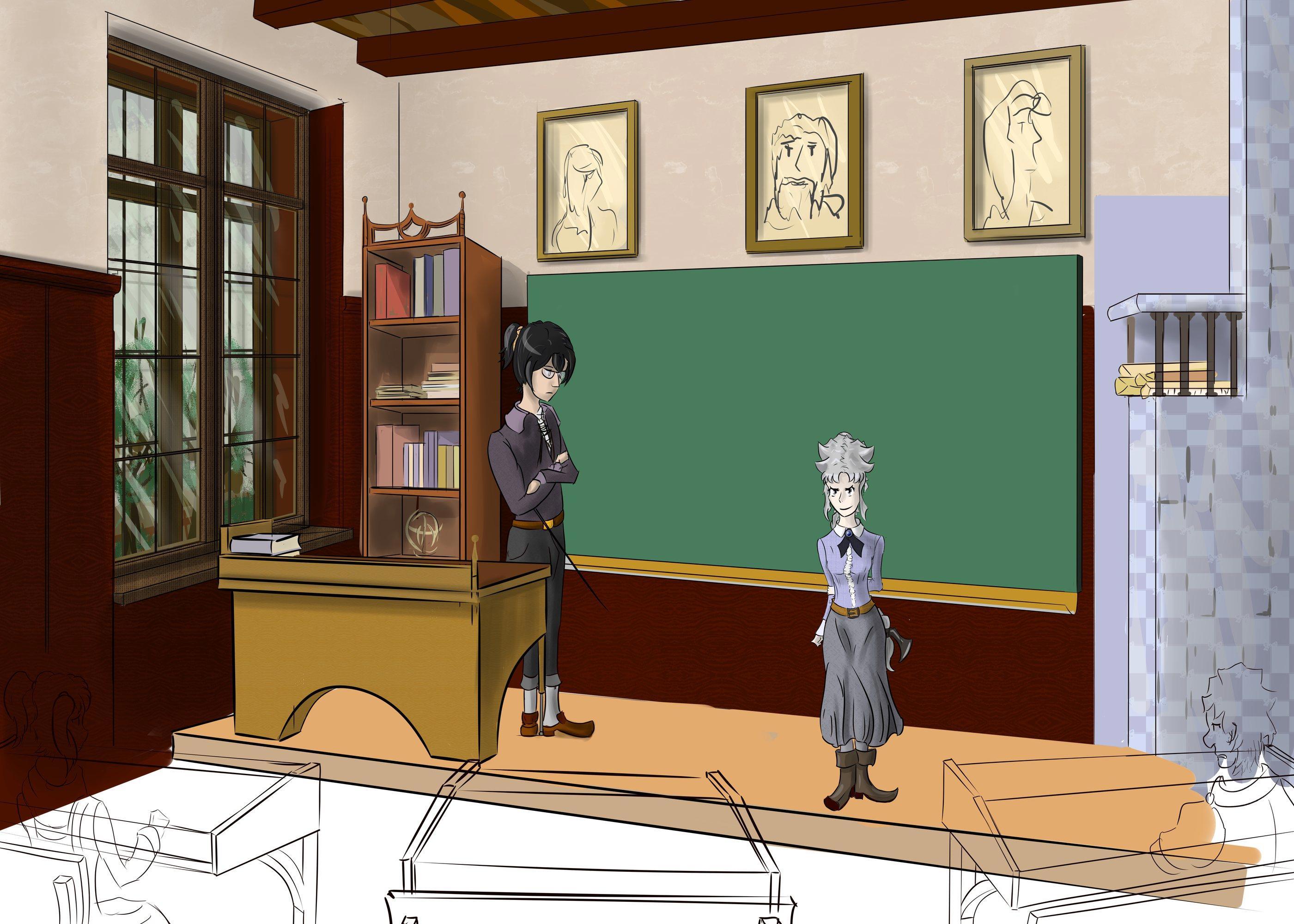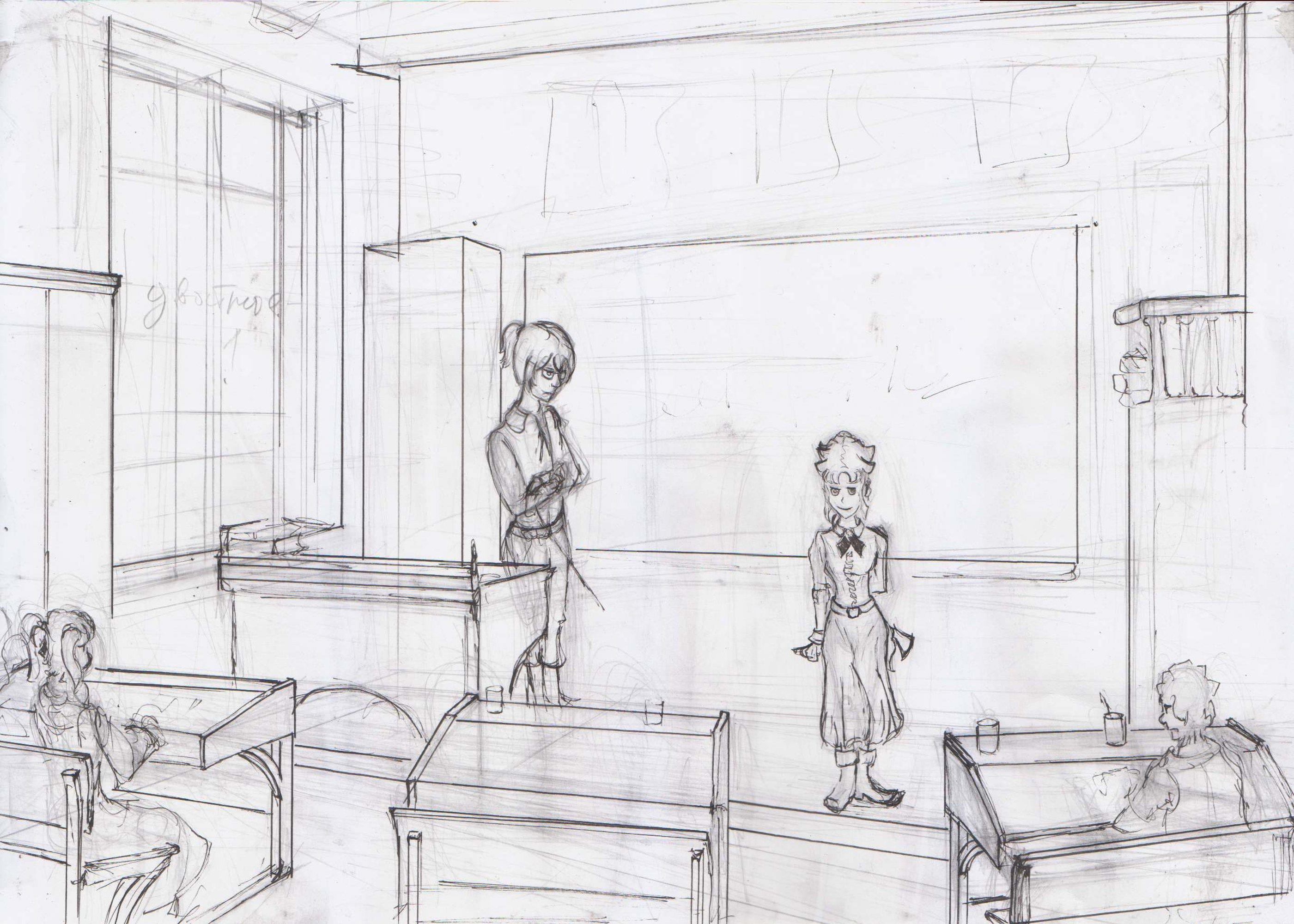 Первый раз в новом классе, День добрый, меня зовут Кетрин Ренс. Пожалуй сюжет слишком уж штамповоно анимашный, но что поделать, если уж пишу повседневку о фентези школе?