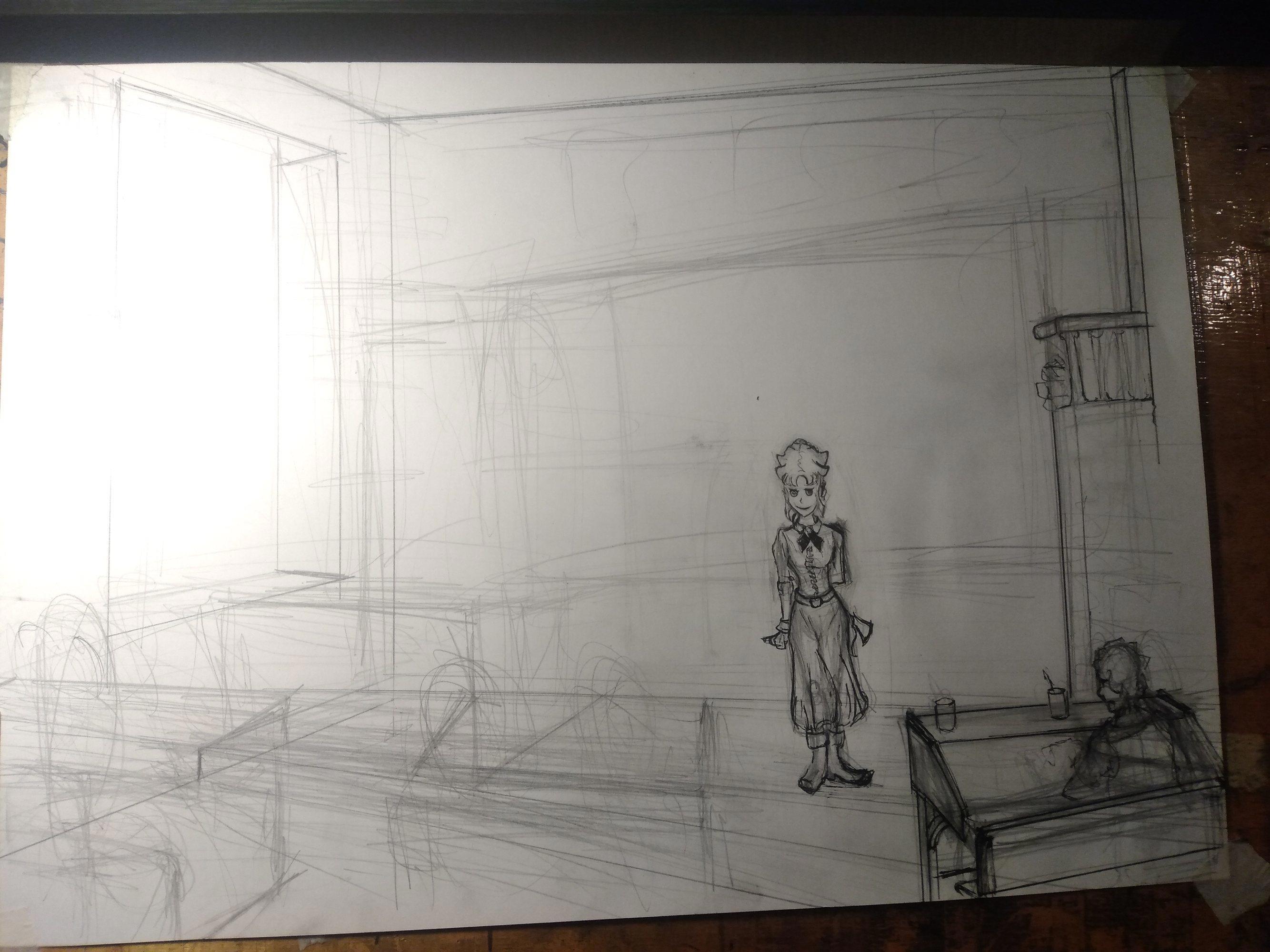 Здесь я отмечаю общие массы, кто где стоит и где должен. ну и габариты помещения.