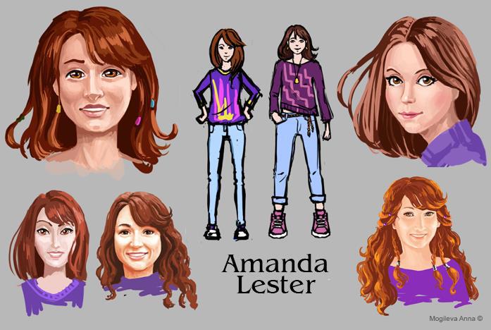 Поскольку проект задумывался масштабным (на сегодняшний день вышло 9 книг), то и подошли мы к нему серьёзно. Начали с разработки главного персонажа - Аманды. К моей просьбе составить словесный потрет персонажа и подобрать рефы (вспомогательные изображения) на внешность и одежду автор подошла очень серьёзно. И вскоре я уже сидела со словарём и, чертыхаясь, пыталась разобраться, что значат все эти странные слова, а также разглядывала многочисленные фотографии подходящих по типажу дам.