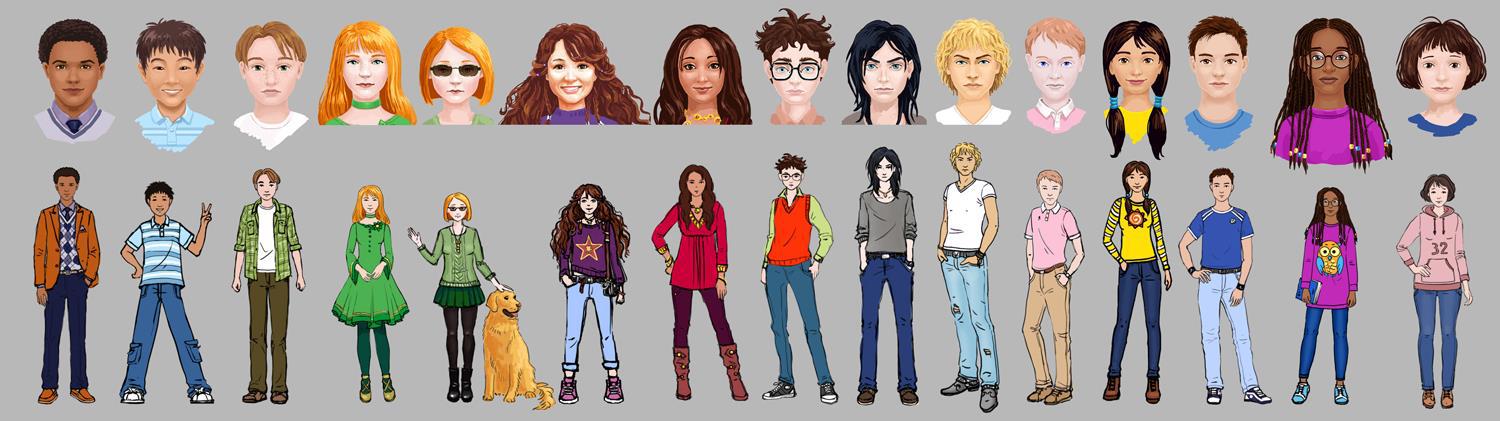 Постепенно компания персонажей разрослась ещё больше, и мы собрали их в линейку: