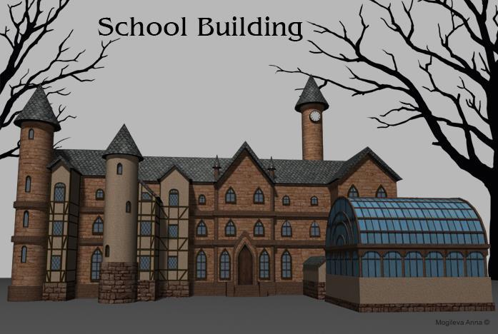 Не осталась без внимания и сама школа: поскольку у Паулы уже были готовы планы этажей, отталкивались в основном от них. Я вовремя вспомнила, что когда-то училась 3d моделированию и запилила простенькую модель.