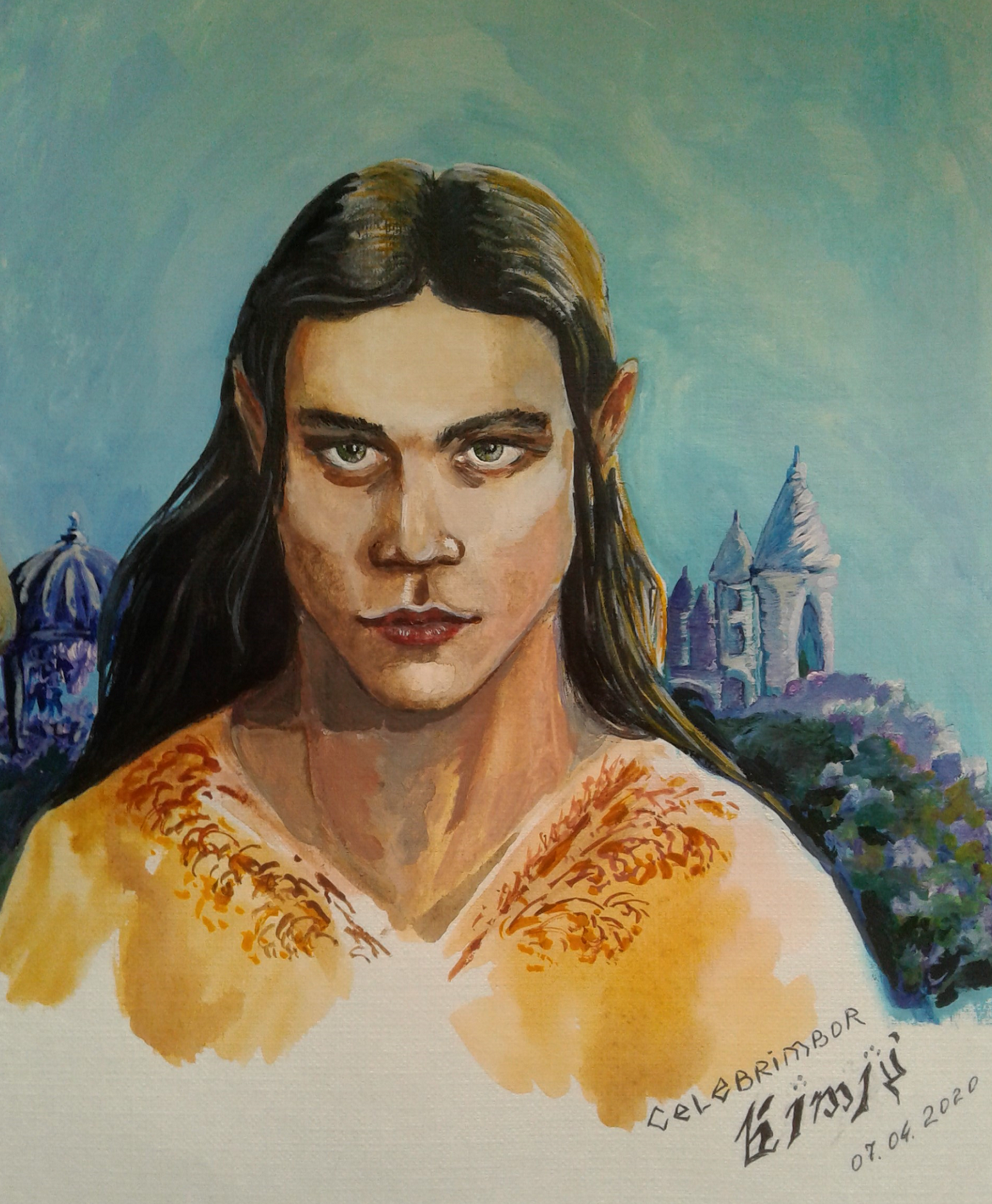 Обычно Келембрибора изображают уже матерым мастером, лордом Эрегиона, а мне захотелось нарисовать его в юности, когда он ещё жил в Амане, при свете Древ. https://author.today/art/15228
