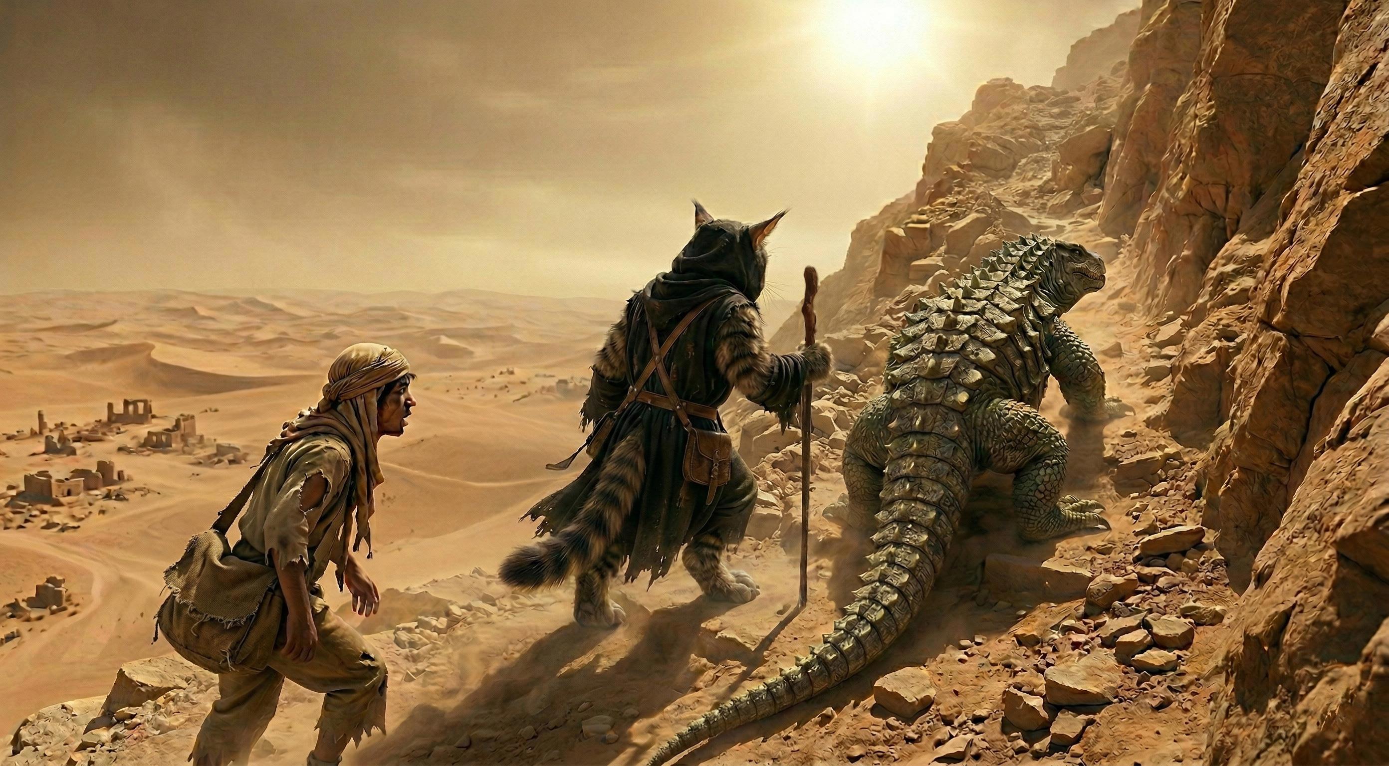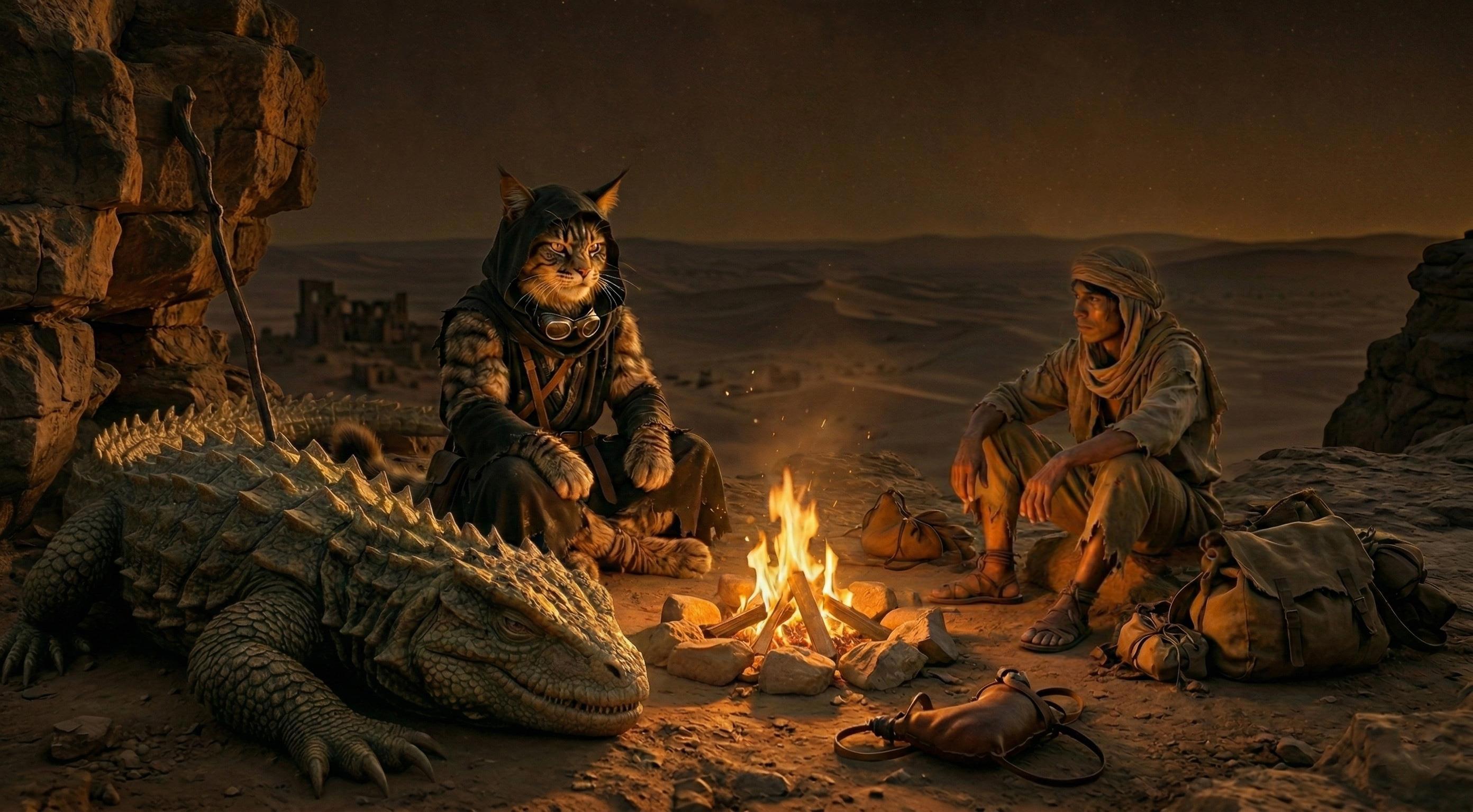Парень на секунду замер, оборвав песню. Огромный хищник приблизился вплотную, шумно выдохнул и... просто лег рядом. Он прижался к парню своим горячим боком, предлагая тепло, которого тому так не хватало. Тяжелая шипованная голова опустилась на песок у самых ног Араба. Варан приоткрыл глаза, ожидая продолжения.